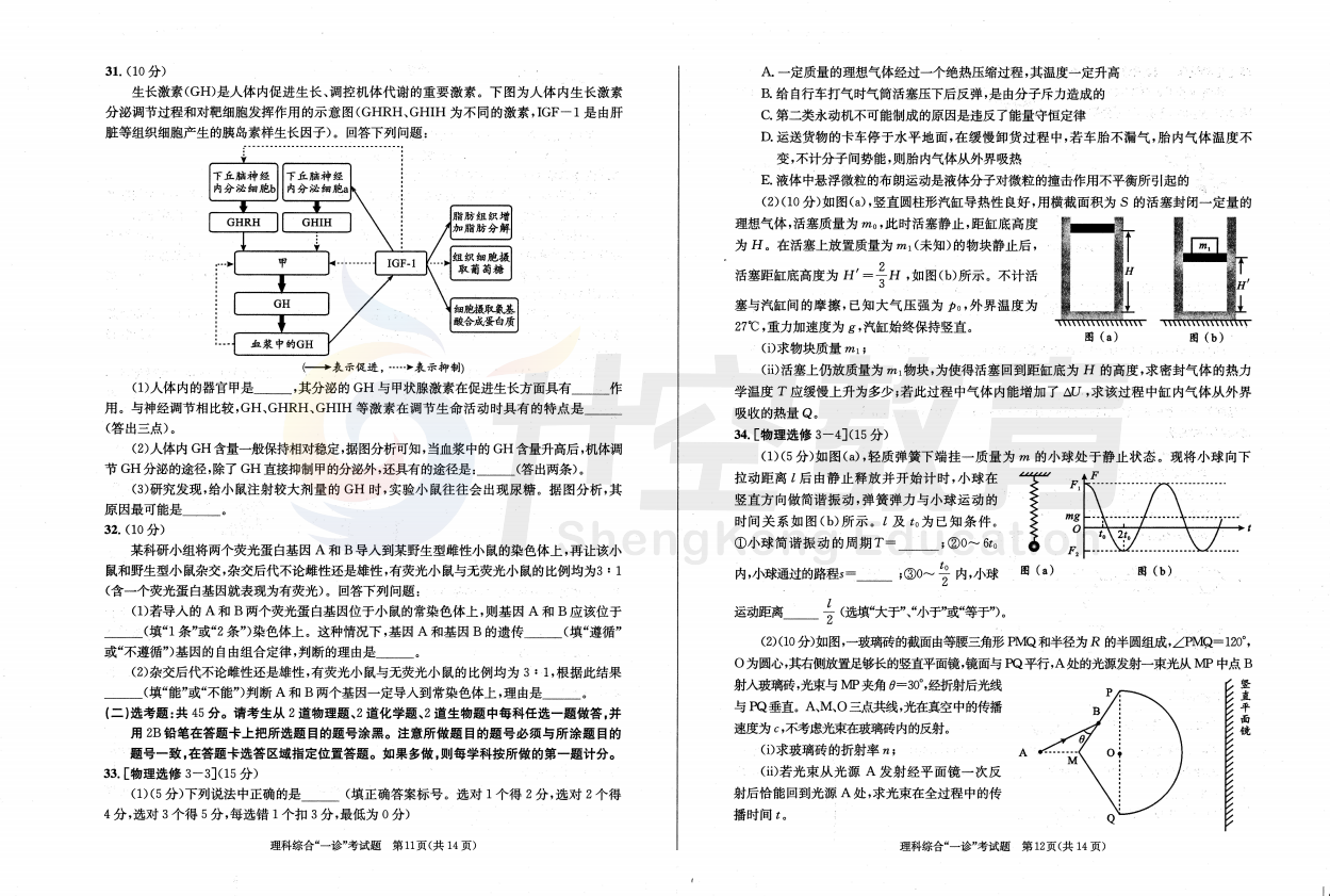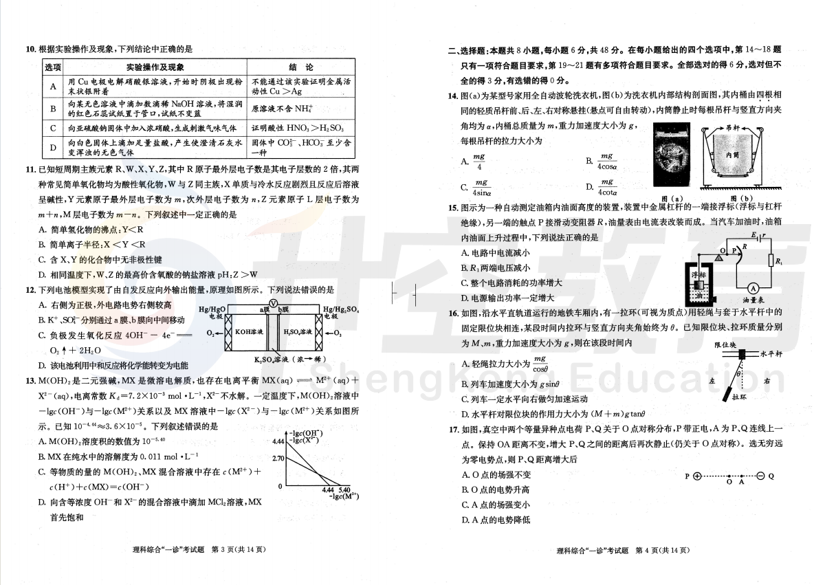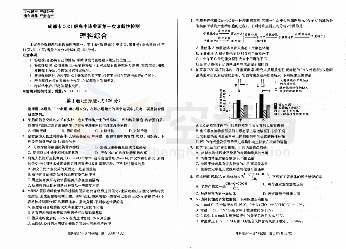 2024届成都一诊理综试题: