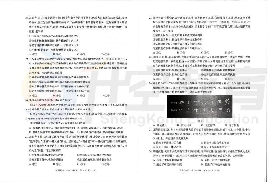 2024届成都一诊文科综合试题: