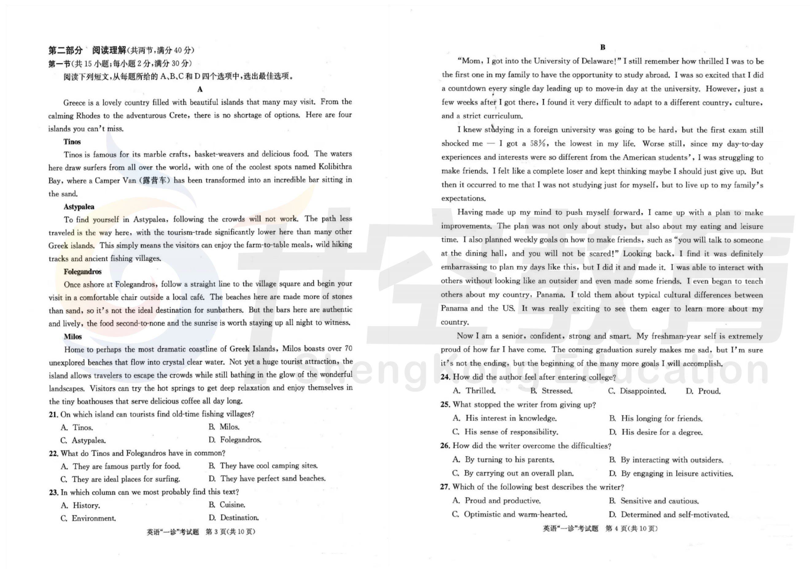 2024届成都一诊英语试卷: