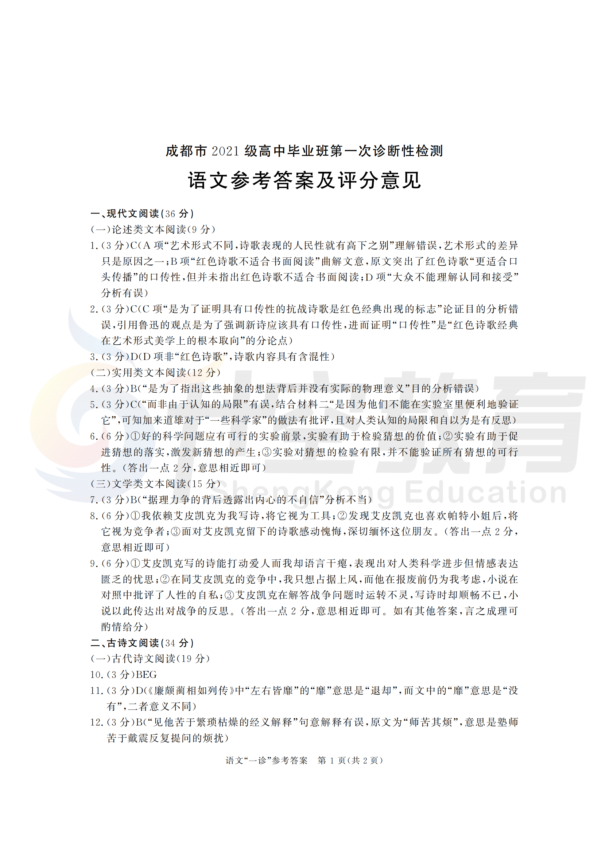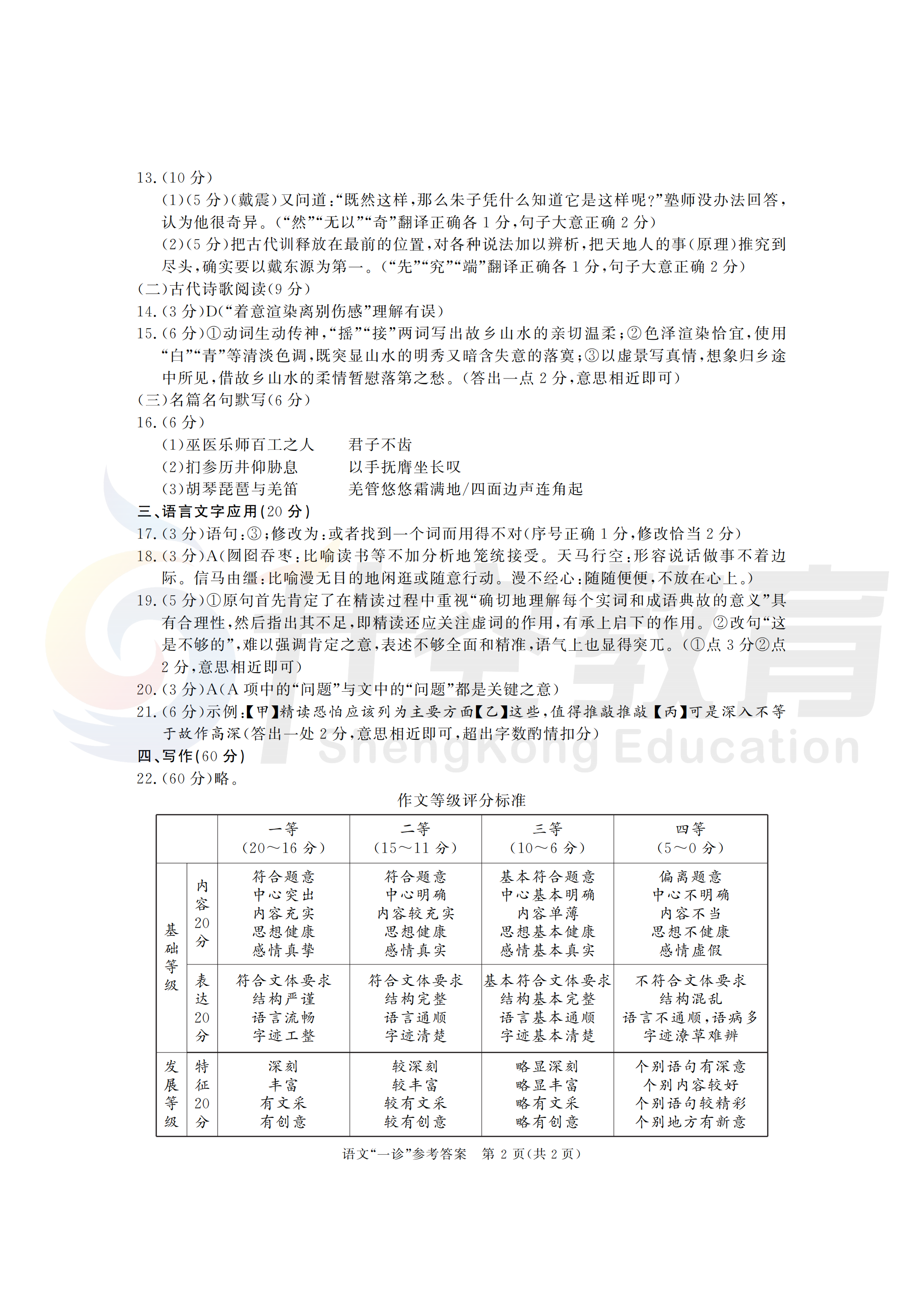 2024届成都一诊语文答案:
