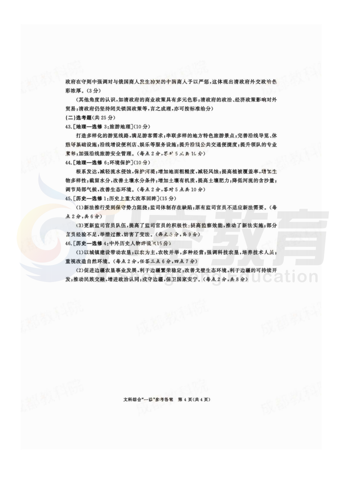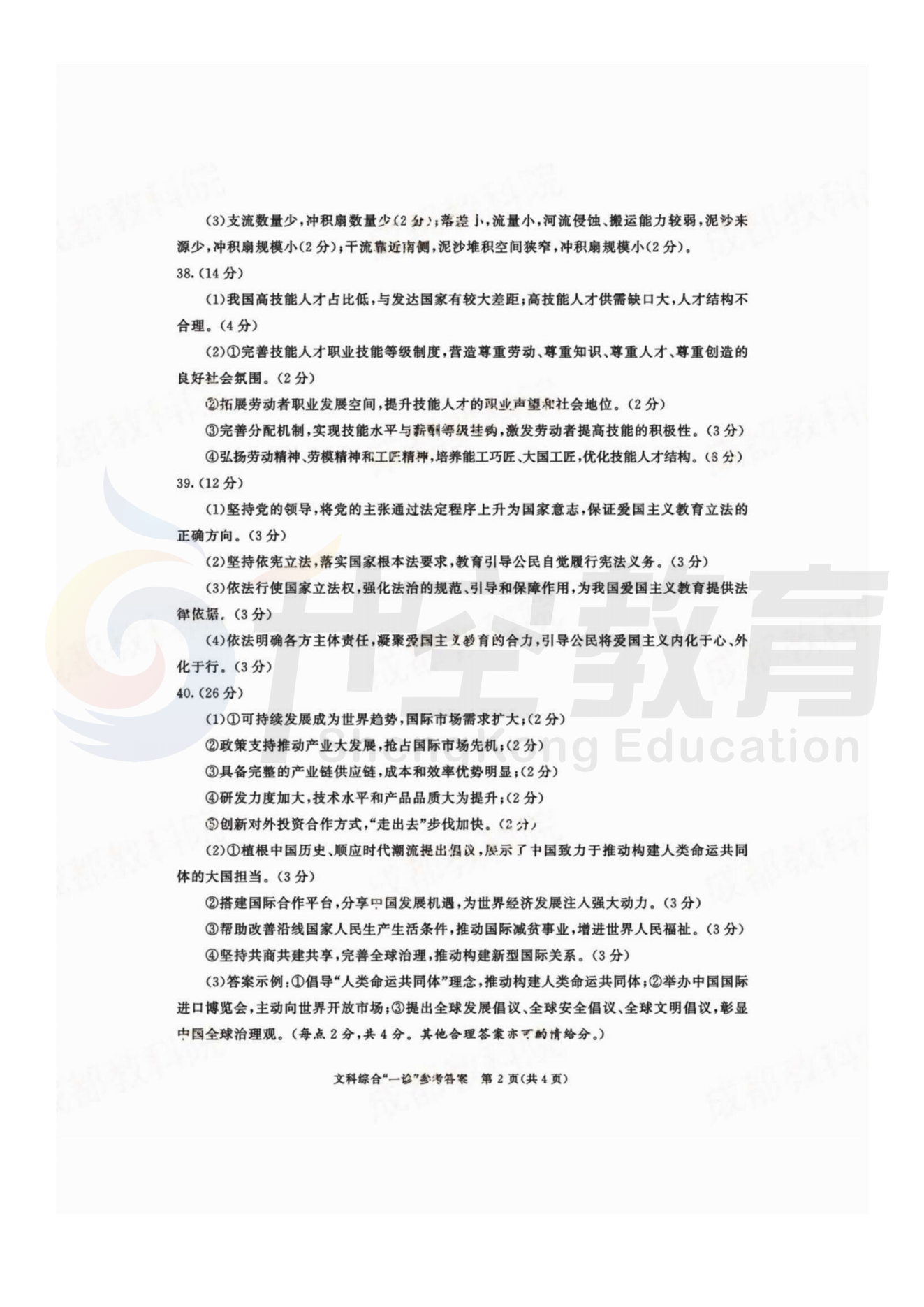 2024届成都一诊文综答案: