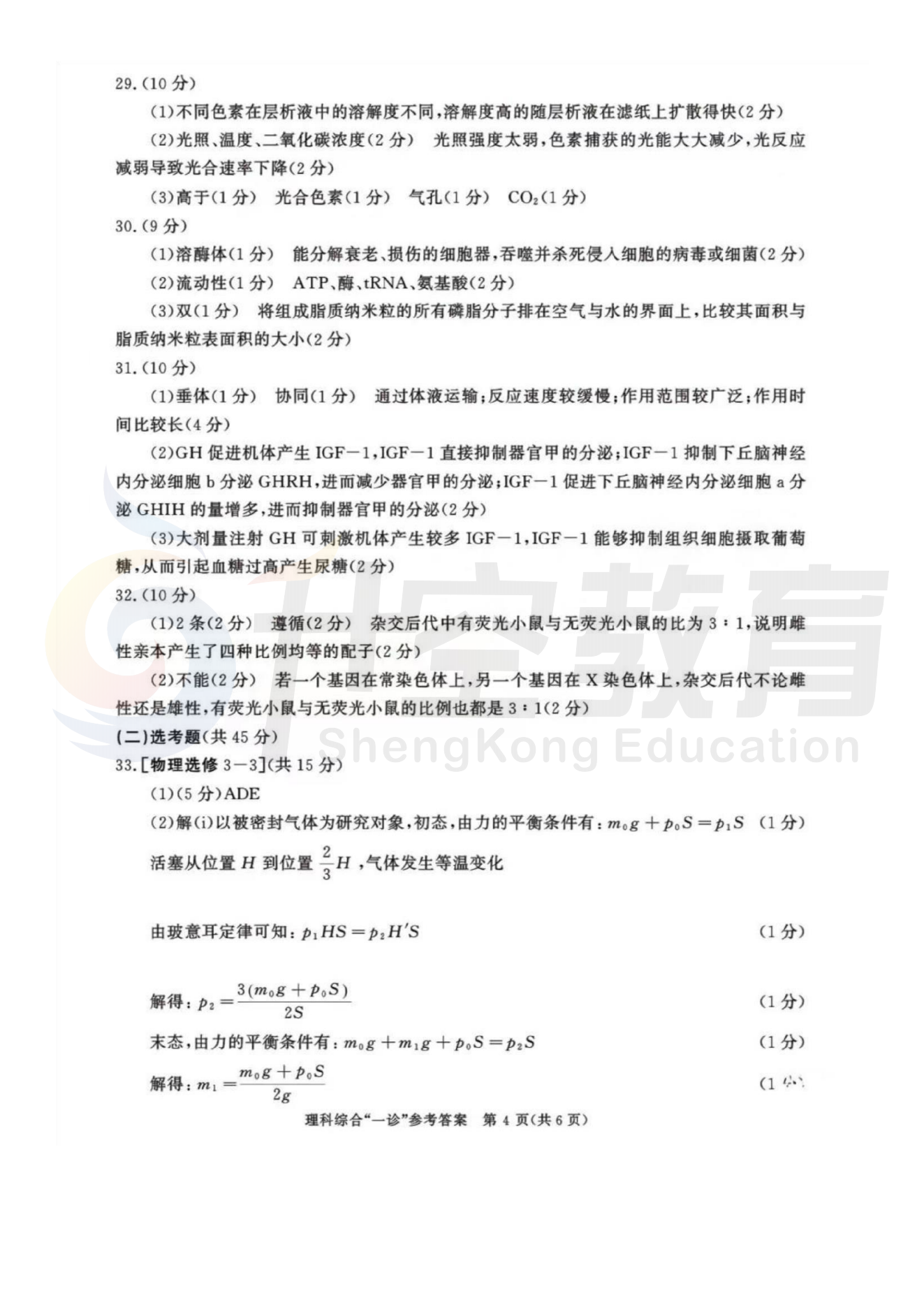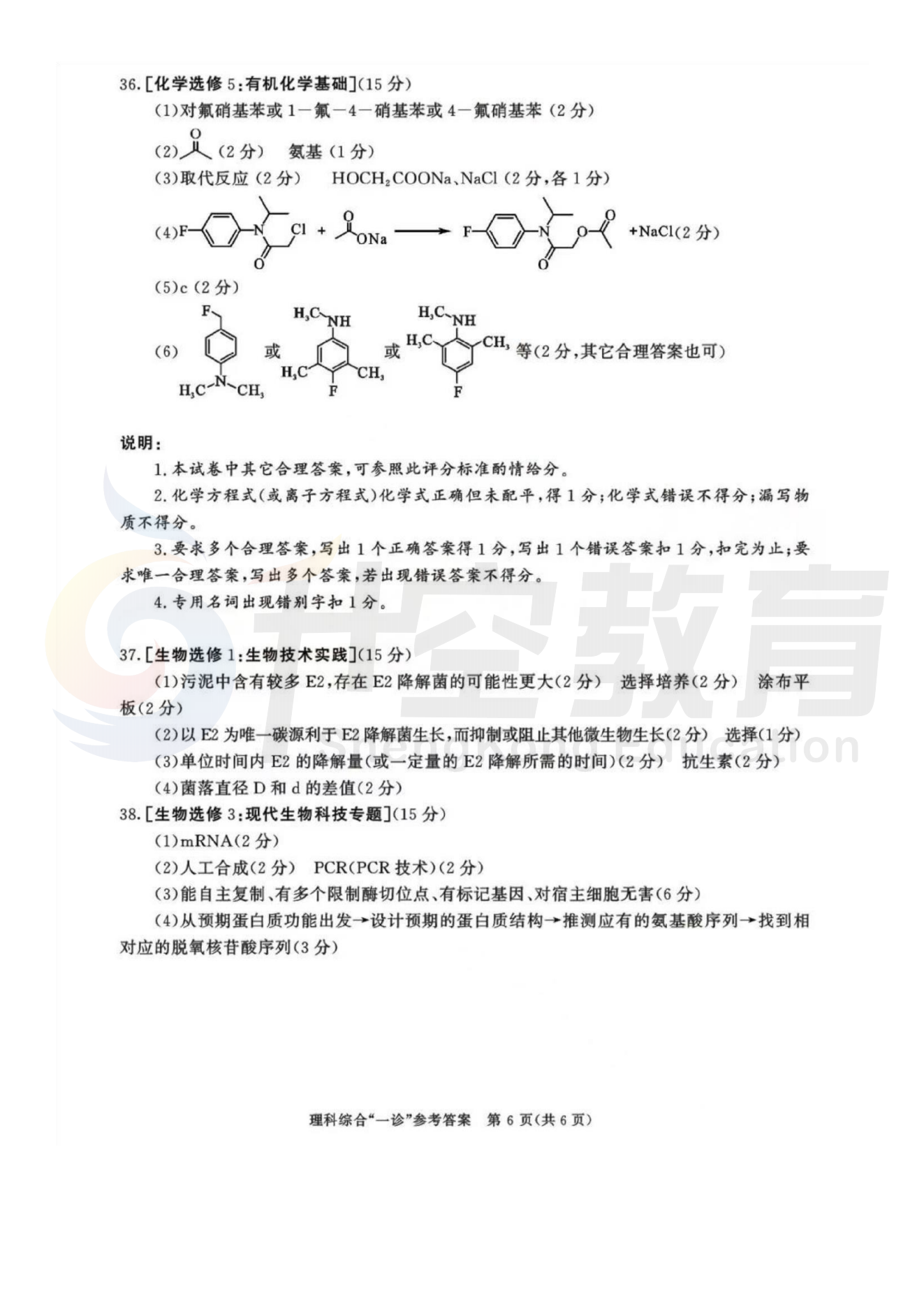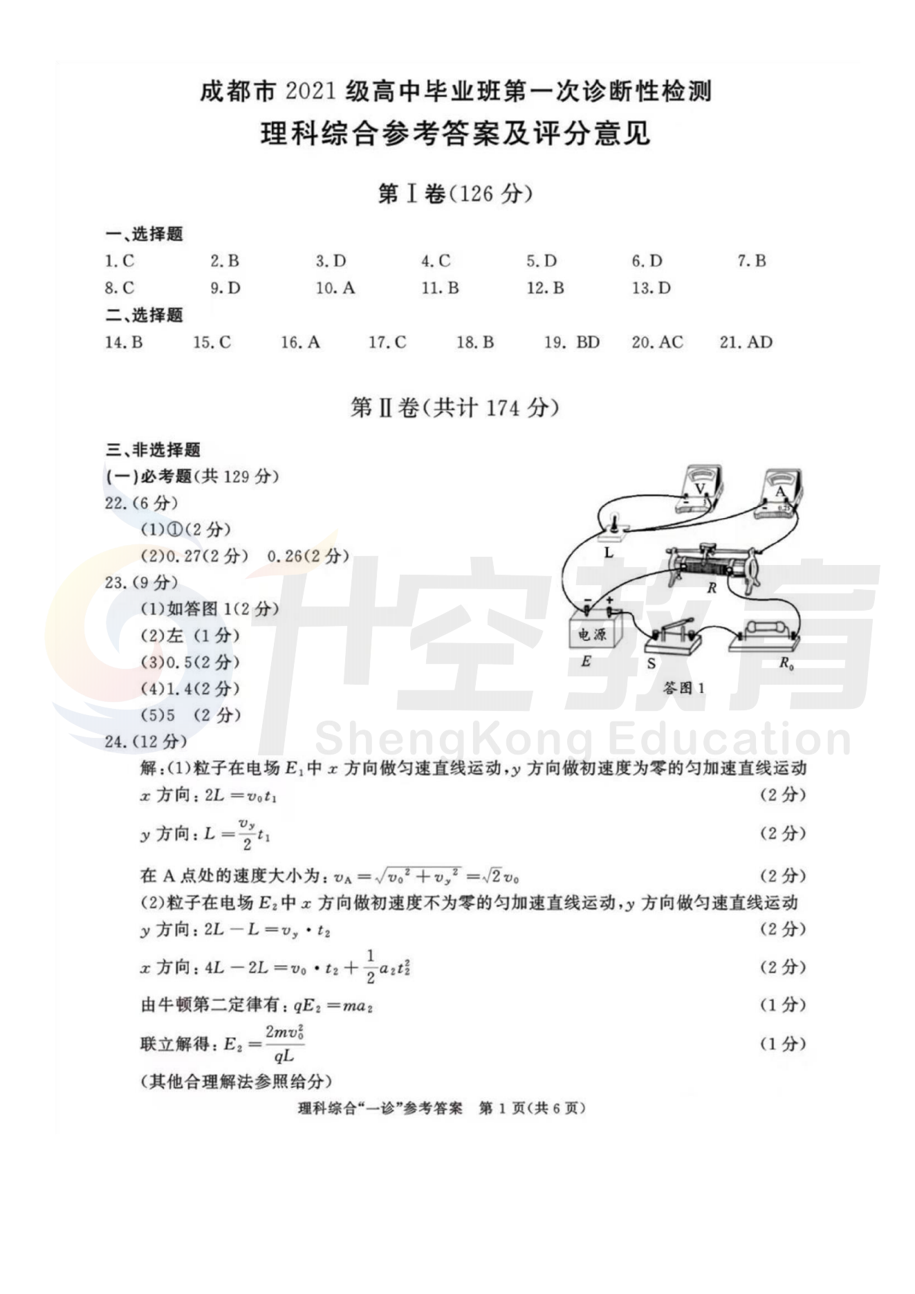 2024届成都一诊理综答案:
