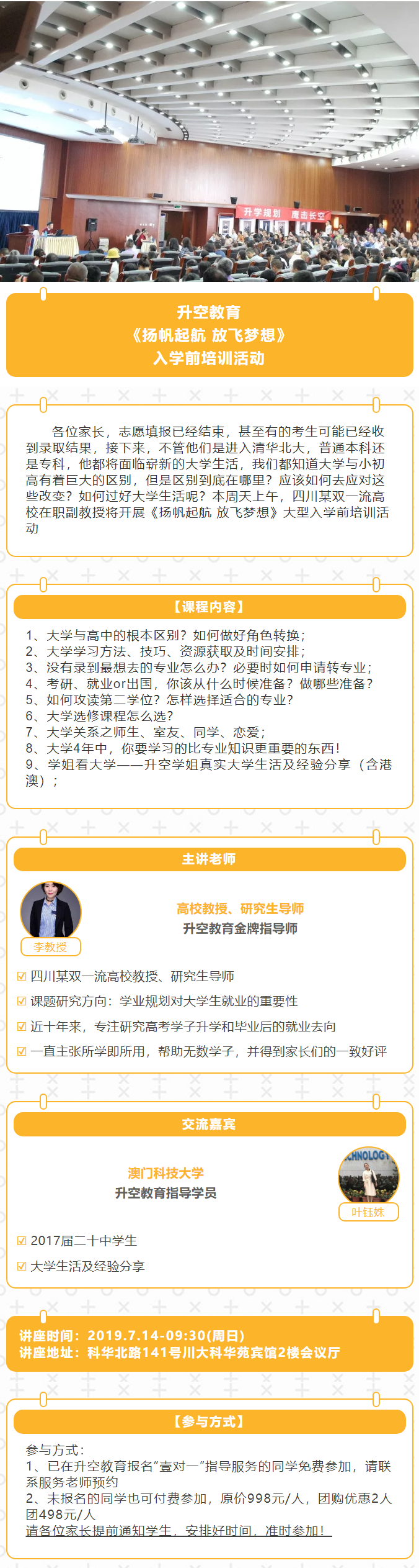 《扬帆起航,放飞梦想》升空教育指导学员入学前培训活动