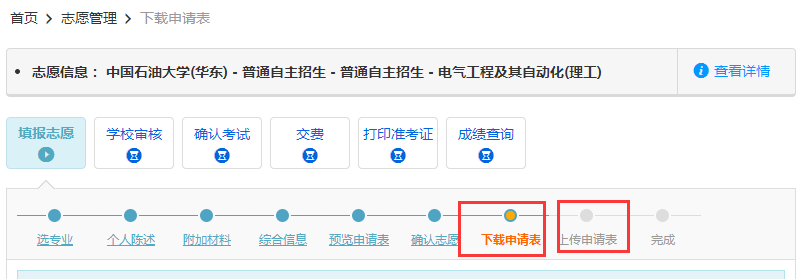 1、报名申请表:根据报名系统提示填写完成各项信息后系统自动生成。考生一定要确保信息无误后再“确认志愿”,并确保上传的申请表编号与报名系统中编号一致。