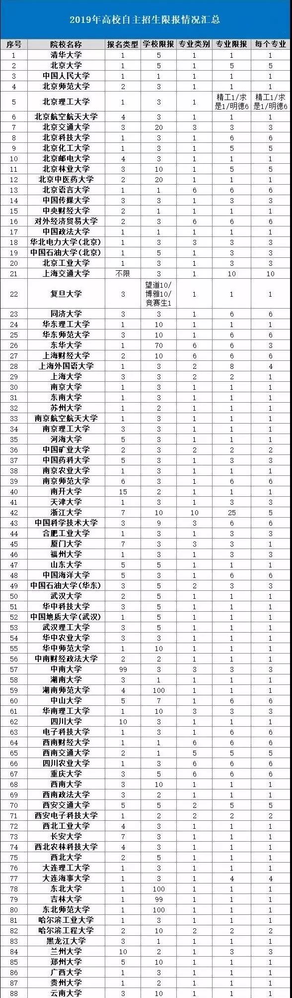 自主招生专业限报数指考生可以报考某一高校自主招生,某大类(类)专业时,可以选择的最多专业数量。