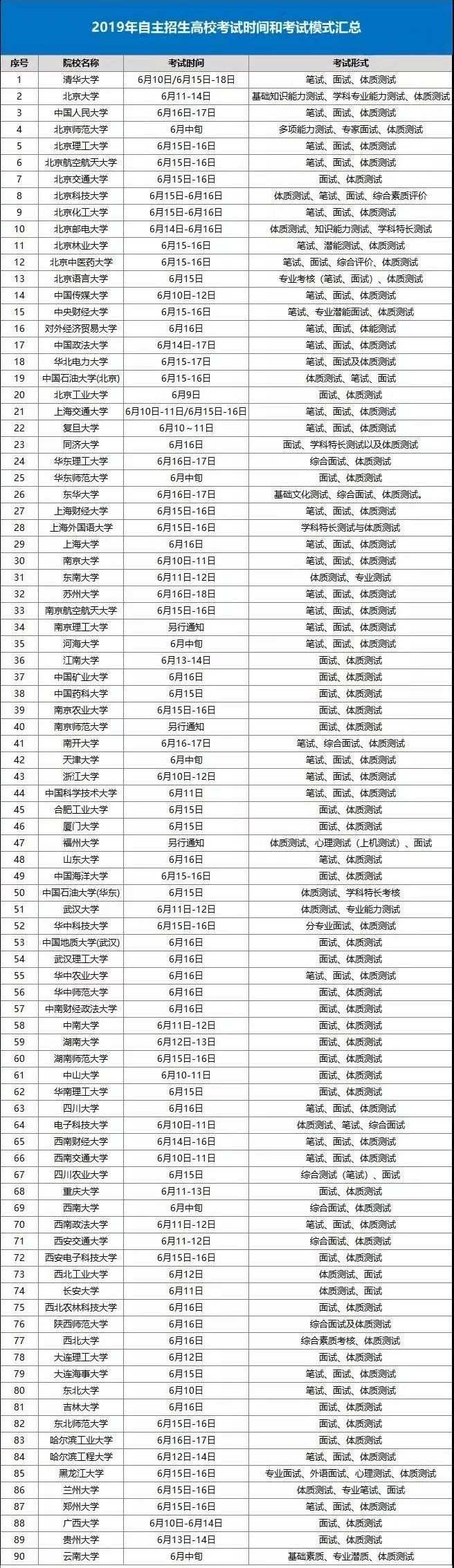 4月12日,东北大学公布2019年自主招生简章,至此,2019年高校自主招生简章全部公布。四川升空教育综合整理90所高校2019年自主招生考试情况,供家长和考生参考。