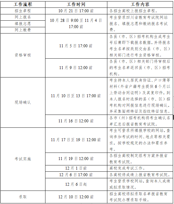 四川省2021年高职扩招专项工作考试招生工作流程