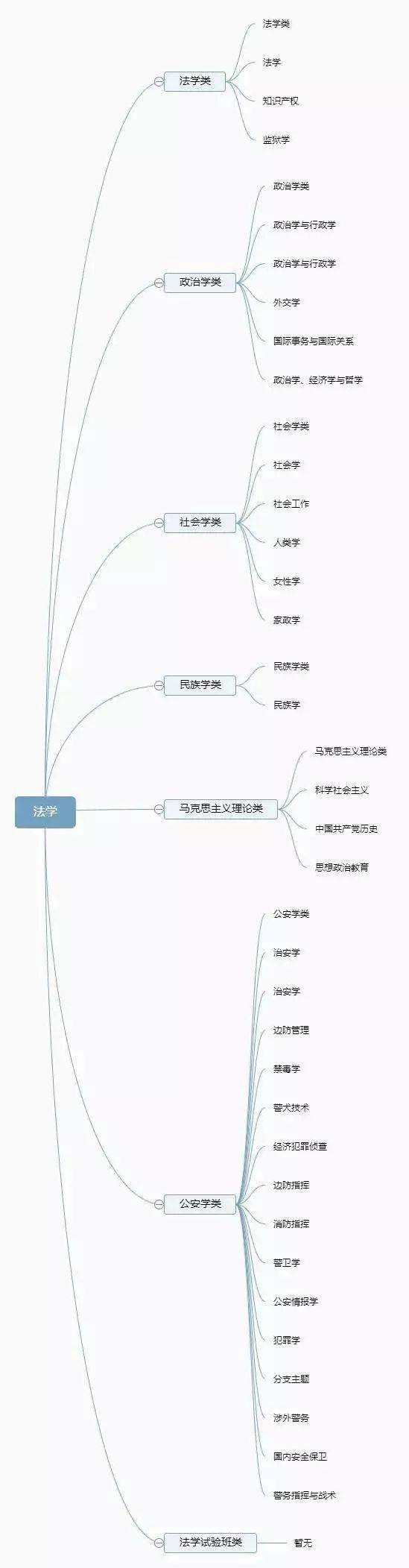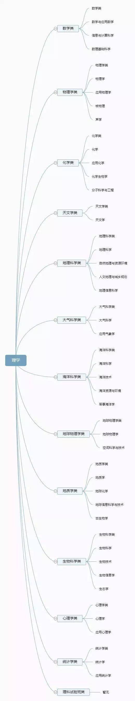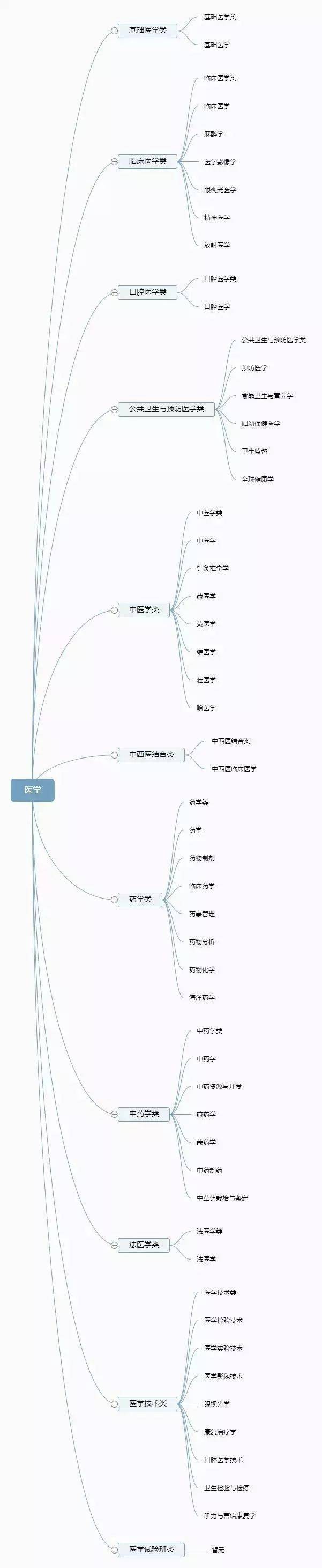 目前,我国大学的全部专业可以分为13个门类,分别是:哲学、经济学、法学、教育学、文学、历史学、理学、工学、农学、医学、管理学、艺术学、军事学。
