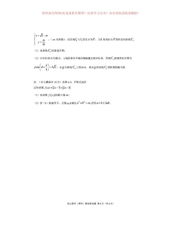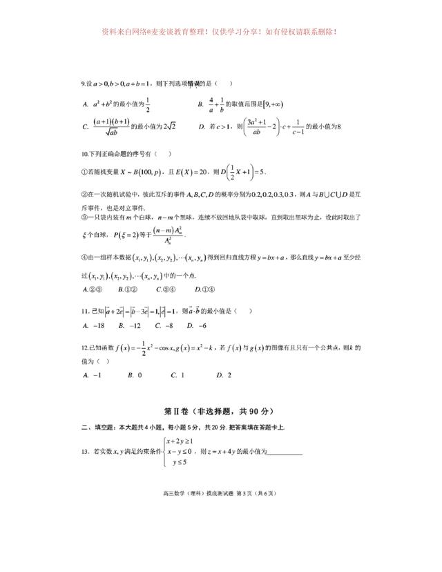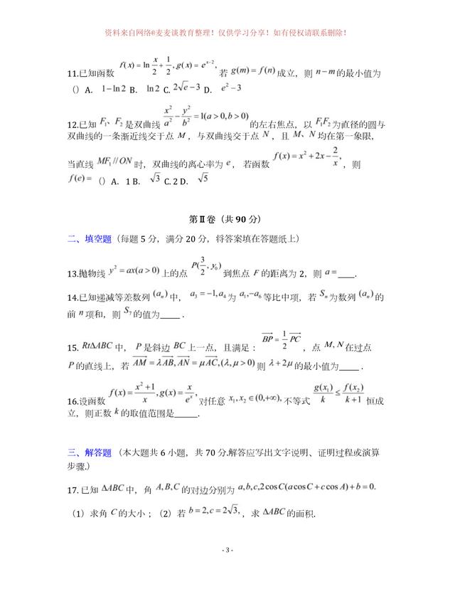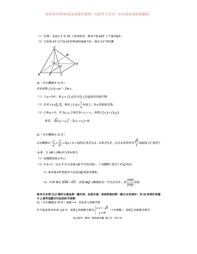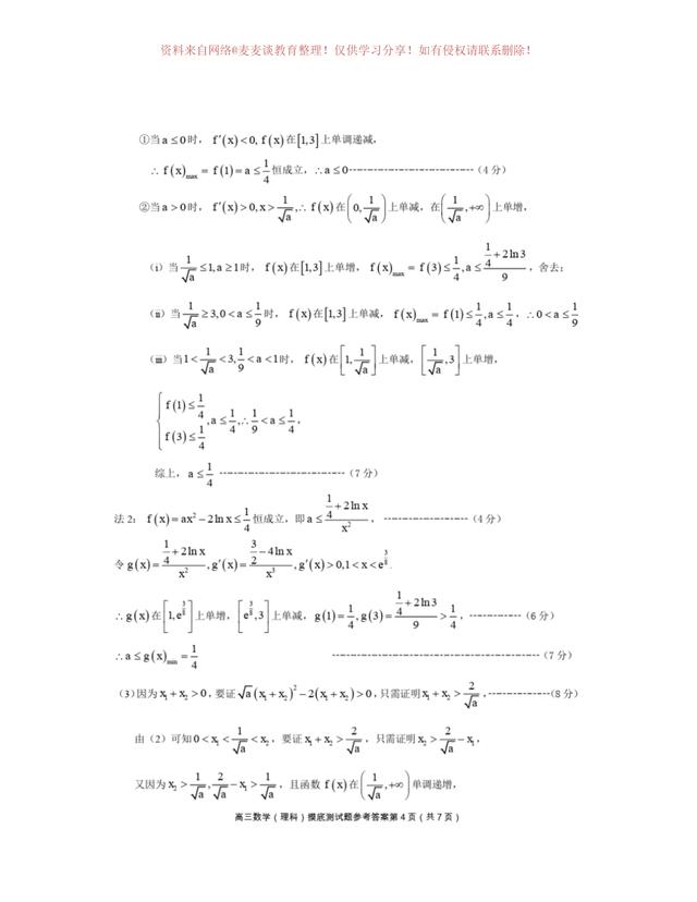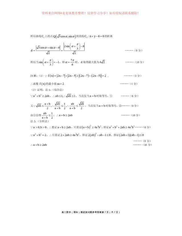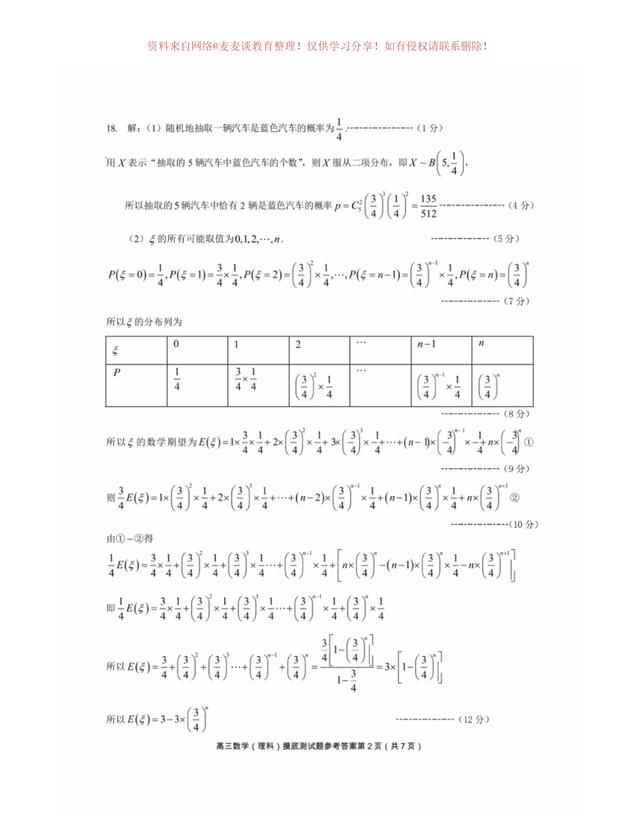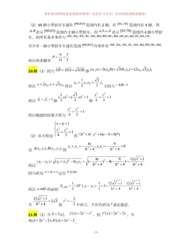 为图片格式,各位同学可以自行打印,作为模拟练习,四川省成都市第七中学2020年上学期高三年级一诊模拟测试数学试卷及答案。分为文科卷和理科卷。都含有参考答案部分。