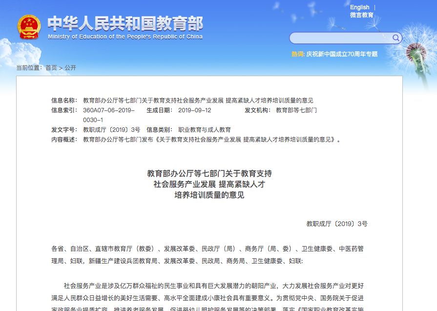对此,教育部、国家发展改革委、民政部、商务部、国家卫生健康委、国家中医药局、全国妇联办公厅就教育支持社会服务产业发展,提高家政、养老、育幼等领域紧缺人才培养培训质量提出如下意见。