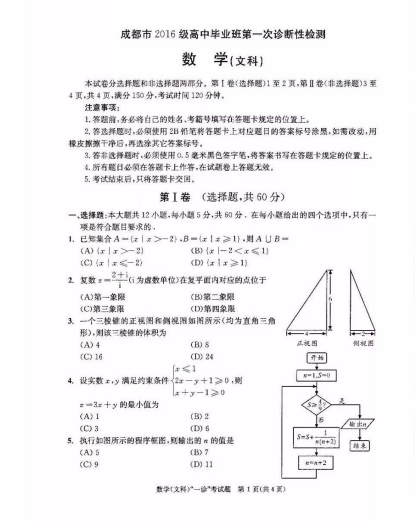 附:成都一诊2019真题及答案