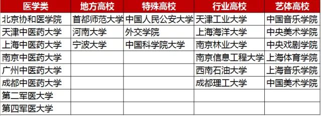 A类:北京8所,天津2所,辽宁1所,吉林1所,黑龙江1所,上海4所,江苏2所,浙江1所,安徽1所,福建1所,山东2所,湖北2所,湖南2所,广东2所,四川2所,重庆1所,陕西2所,甘肃1所。
