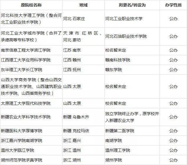 截止到目前省级教育厅公示的拟转设公办高校的有