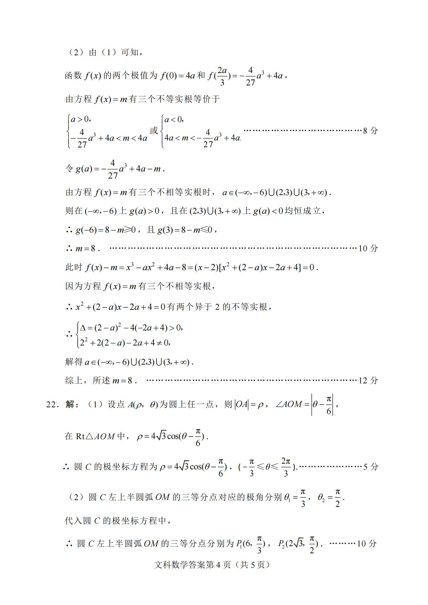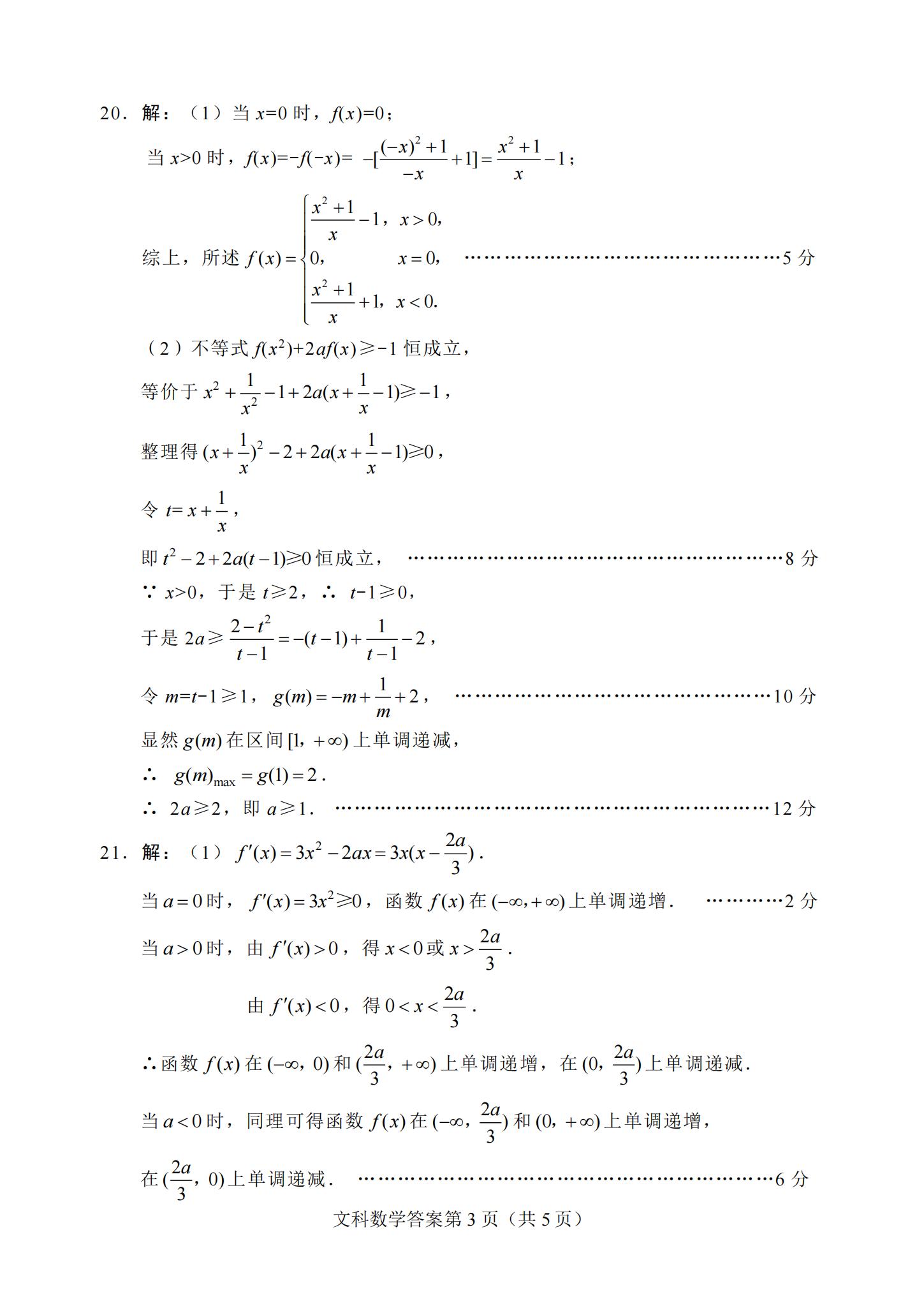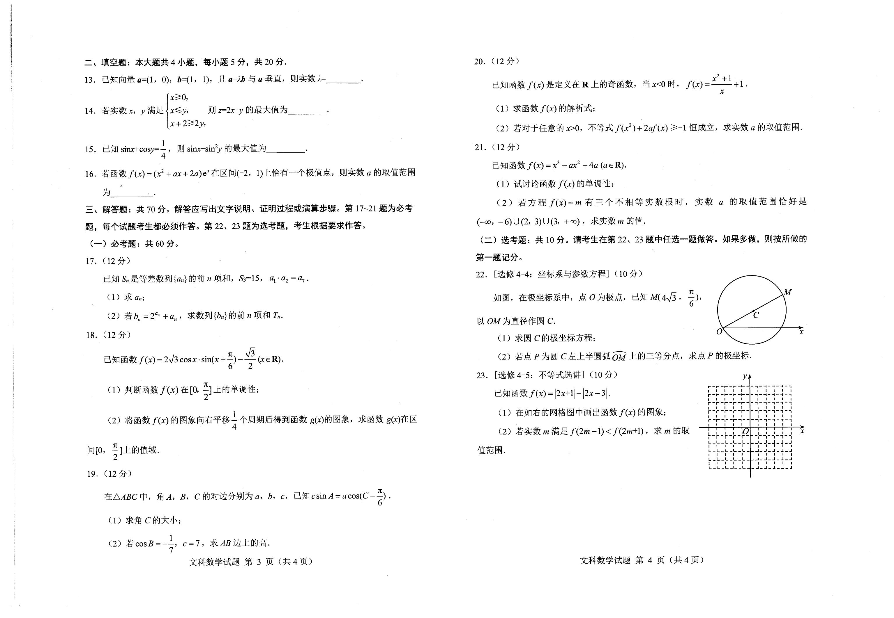 2021届绵阳一诊文科数学试题及答案: