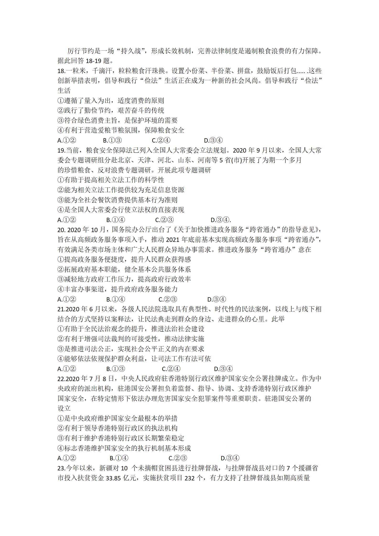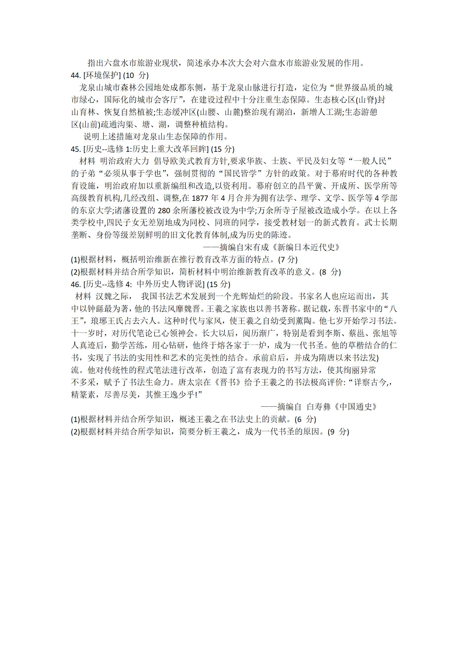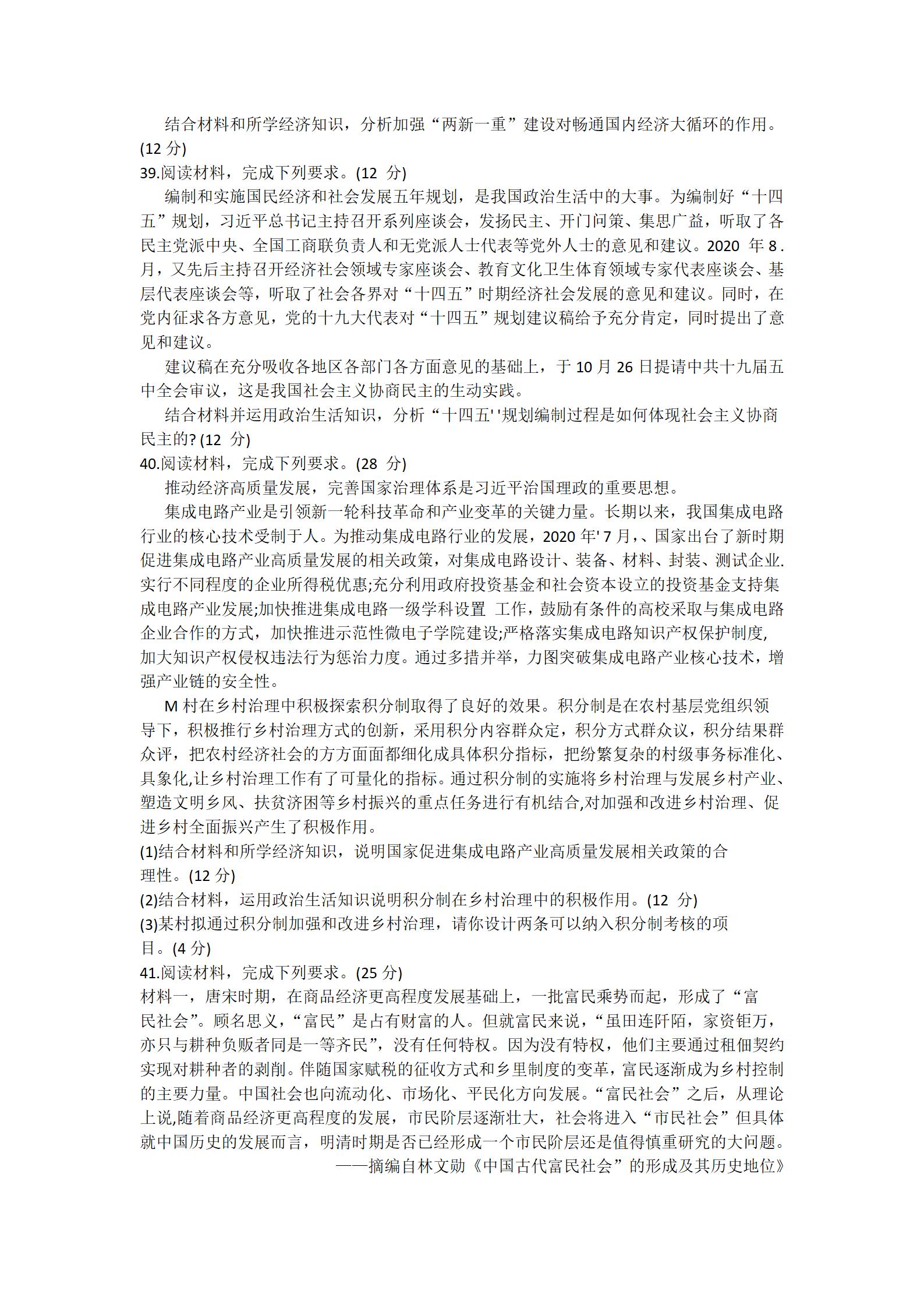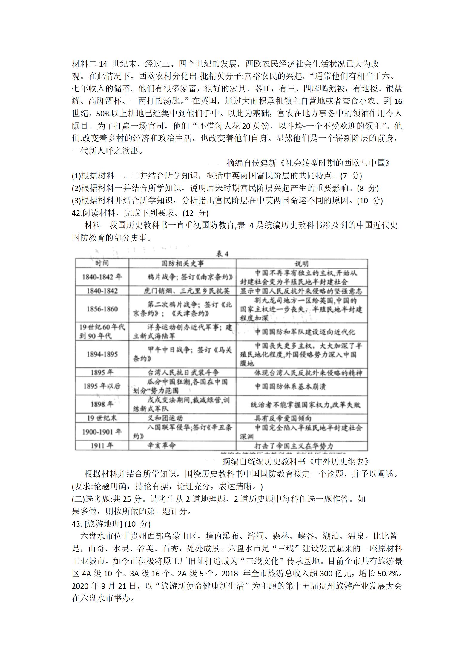 2021届绵阳一诊文综试题及答案:
