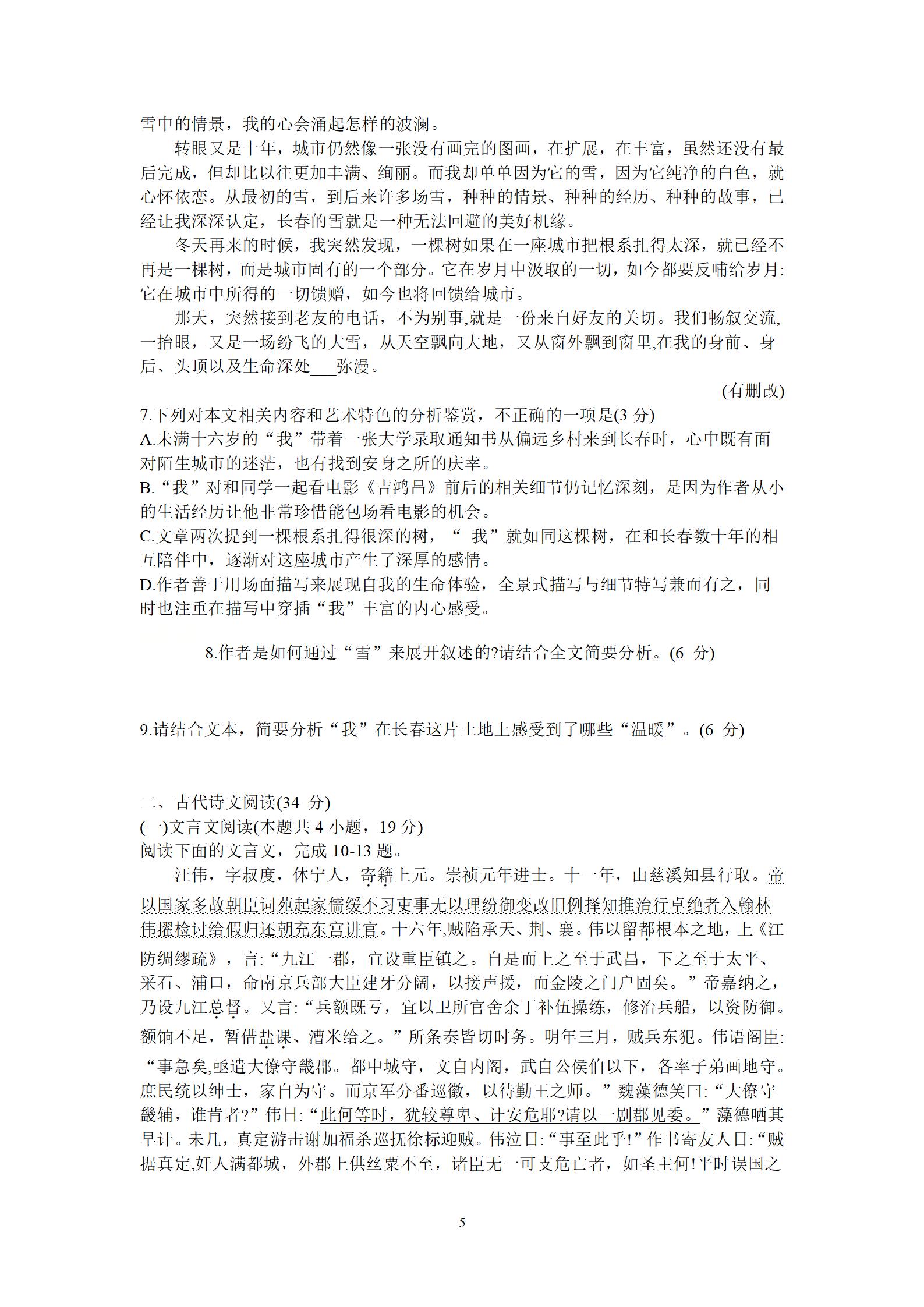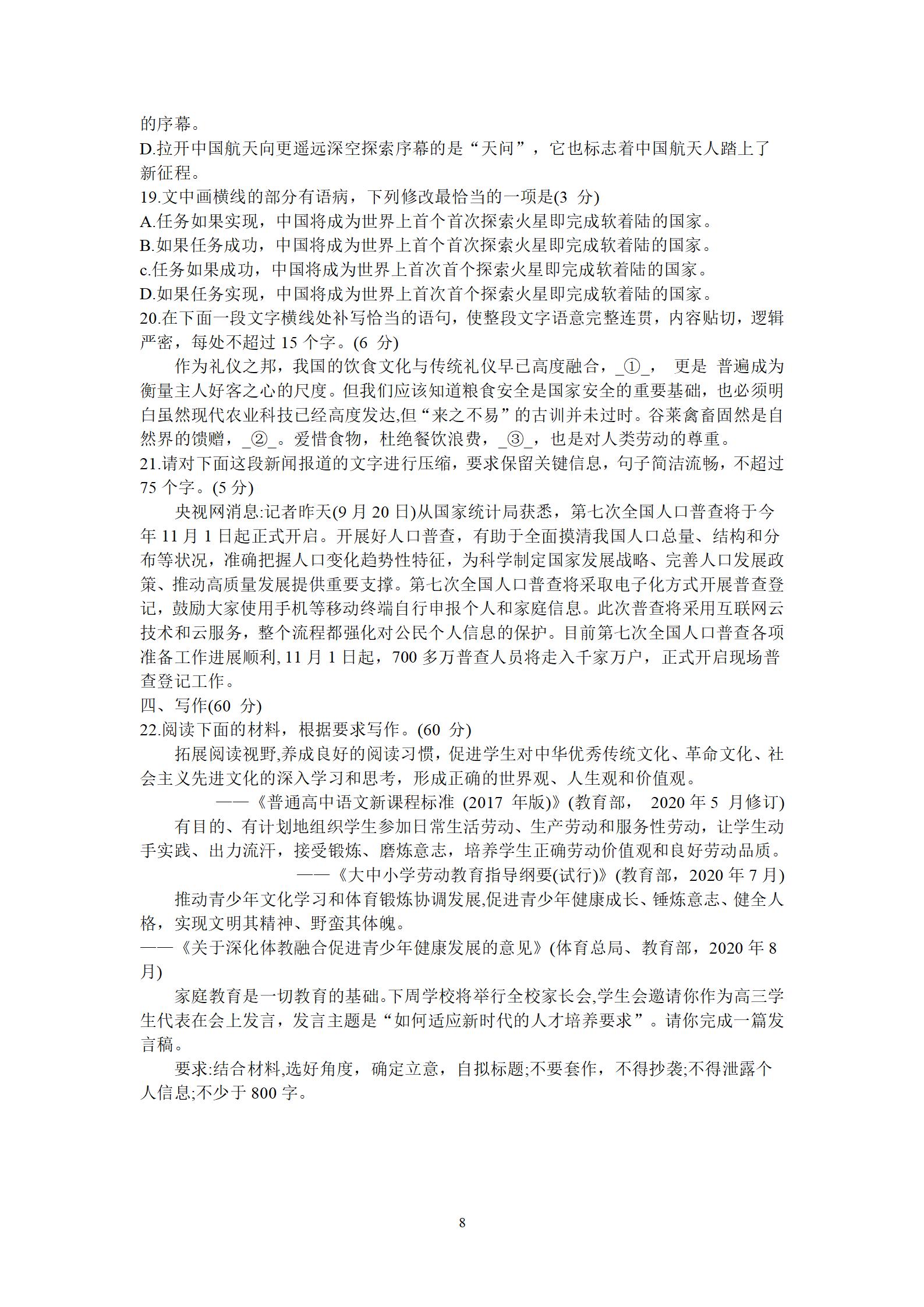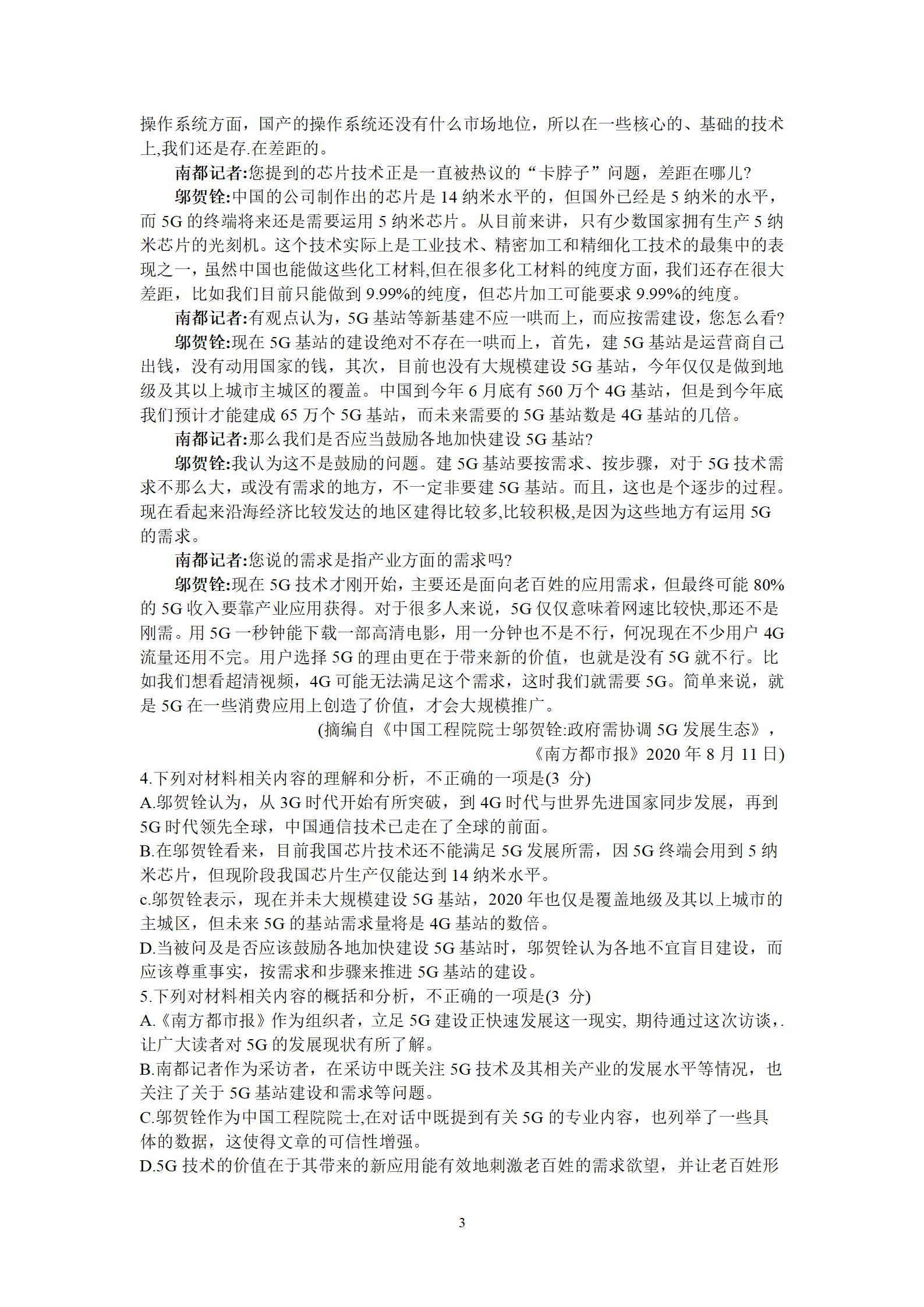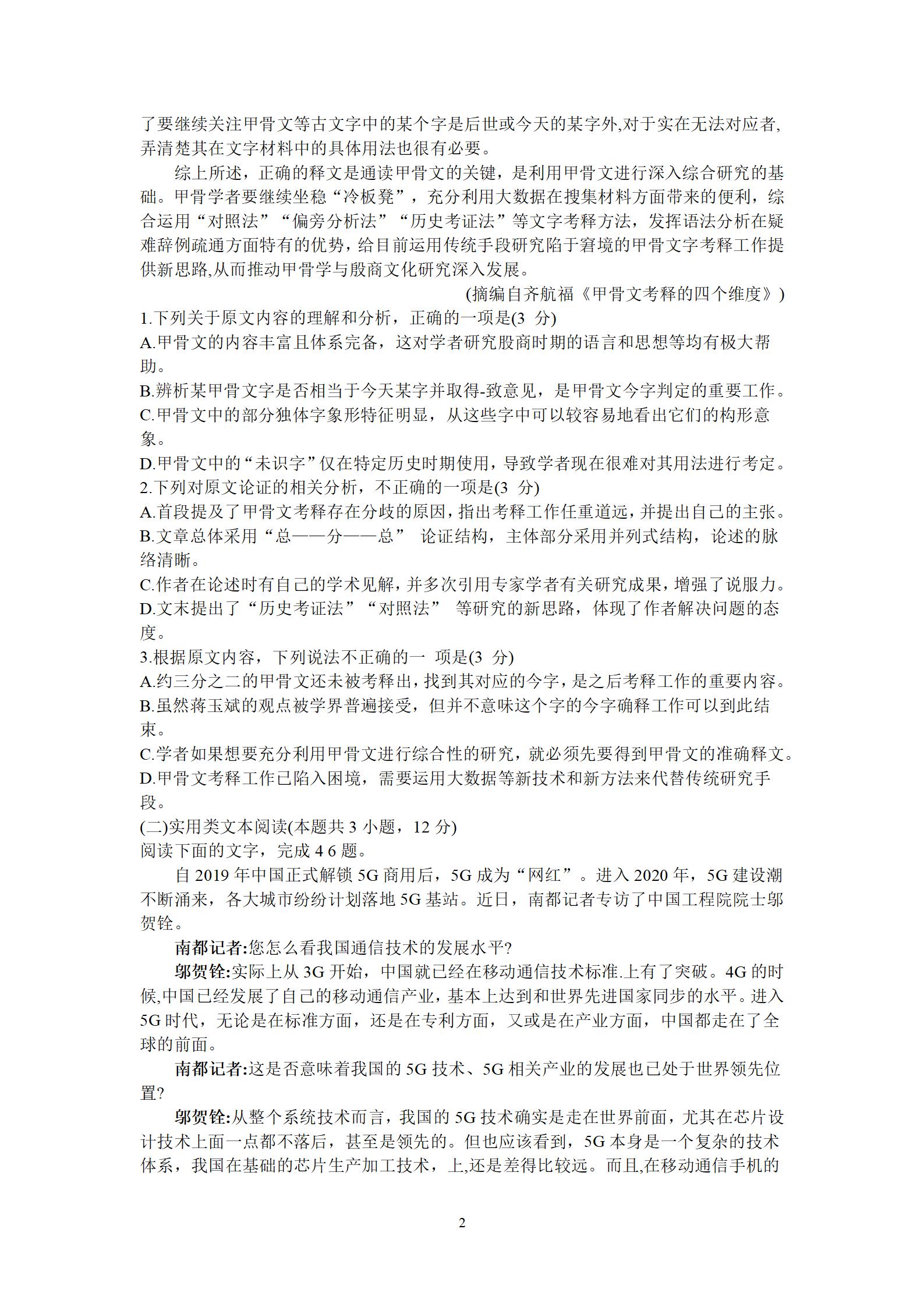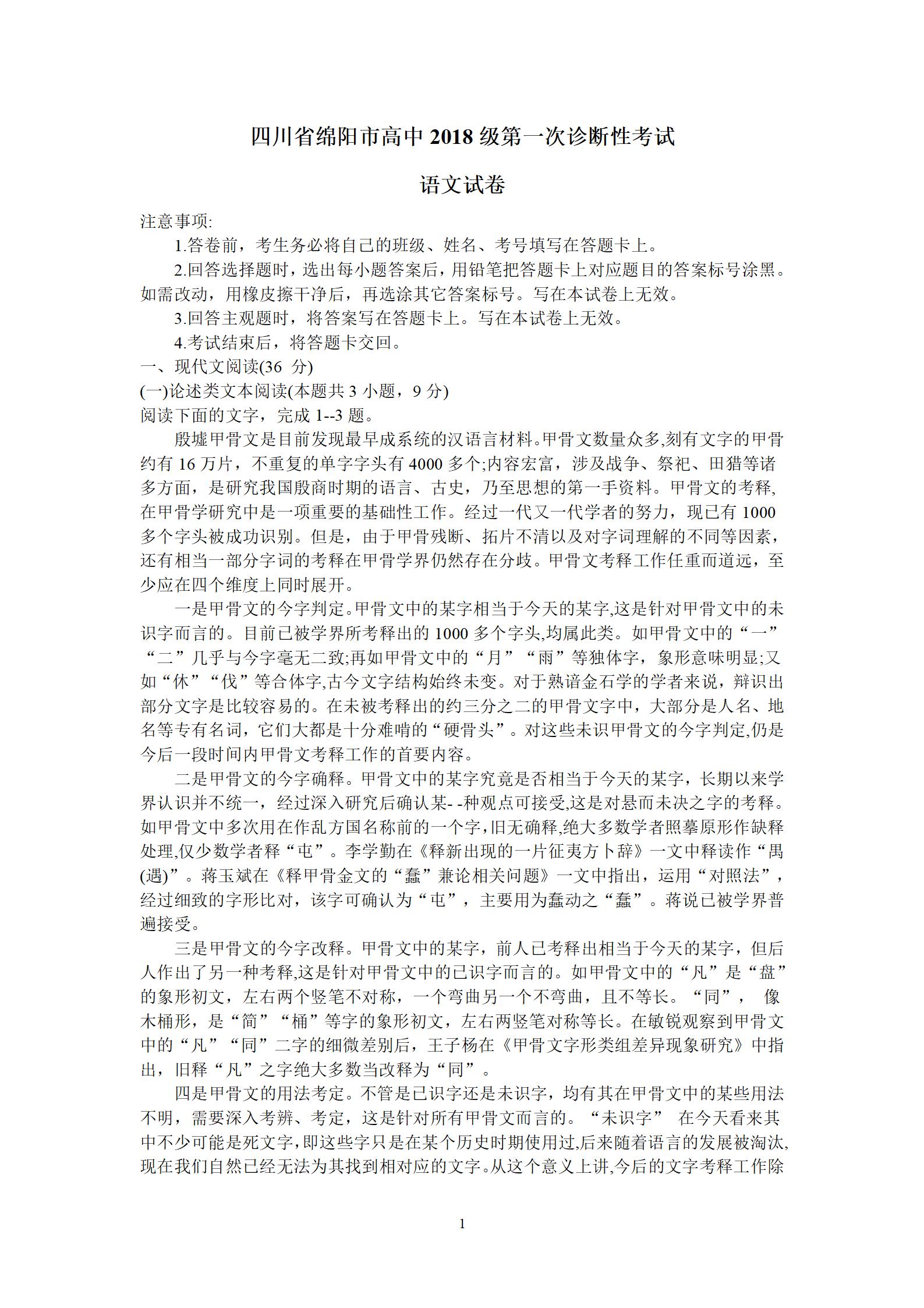 2021届绵阳一诊语文试题及答案: