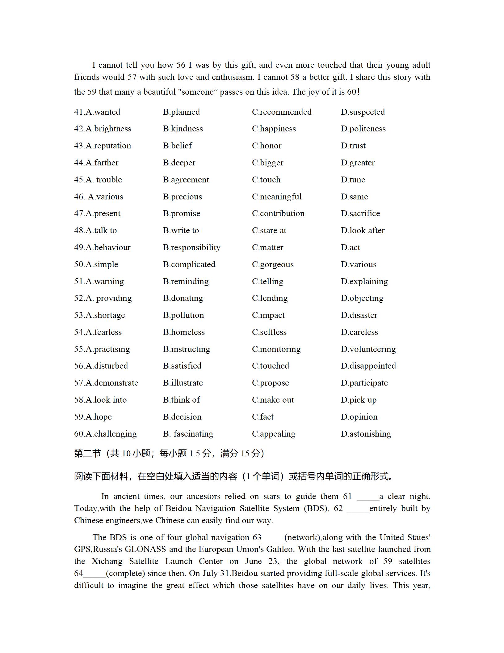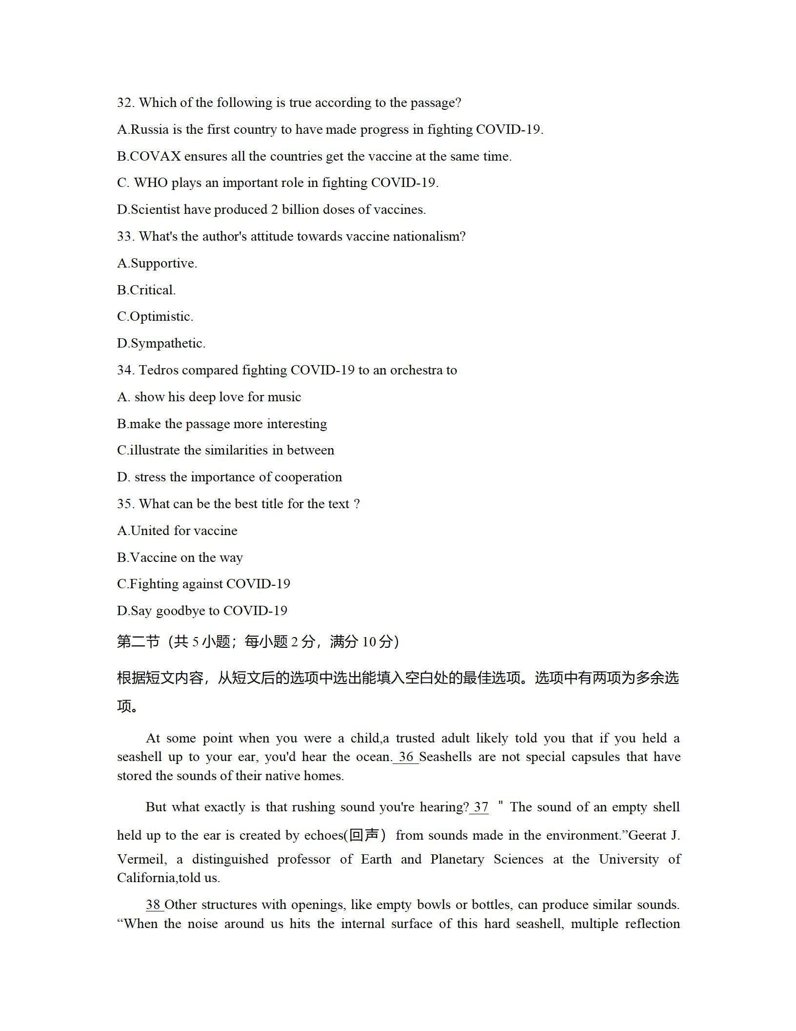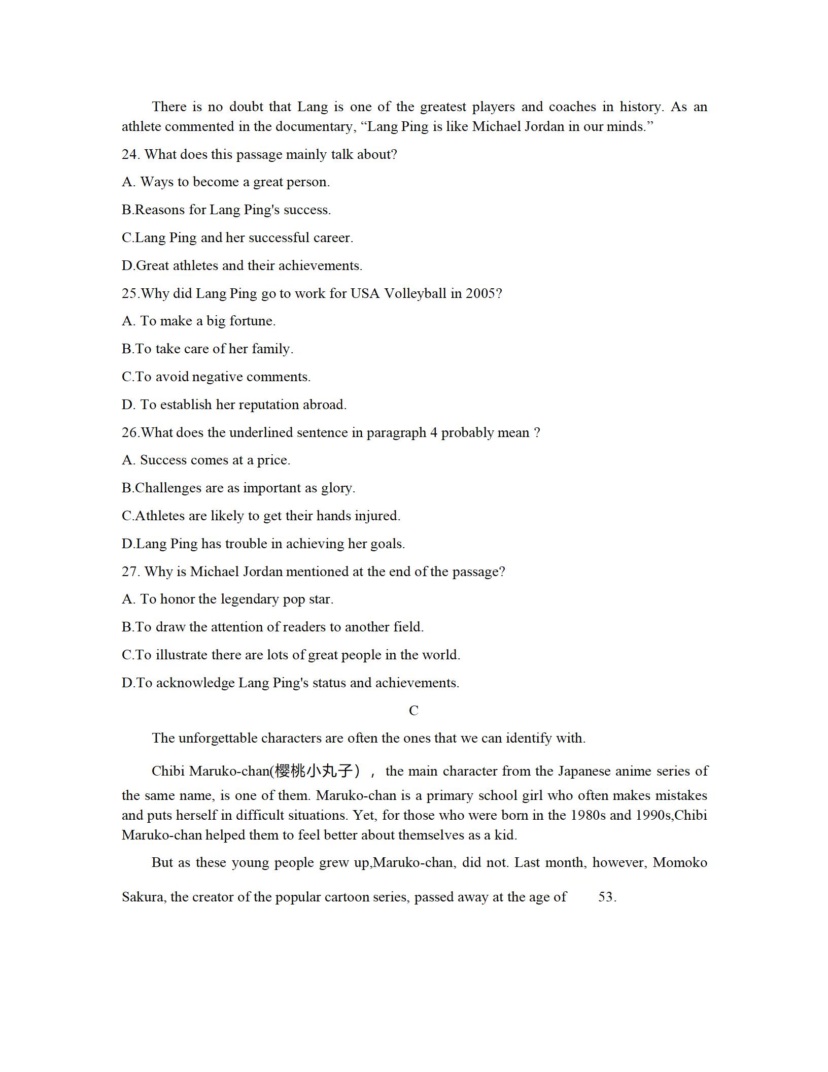2021届绵阳一诊英语试题及答案: