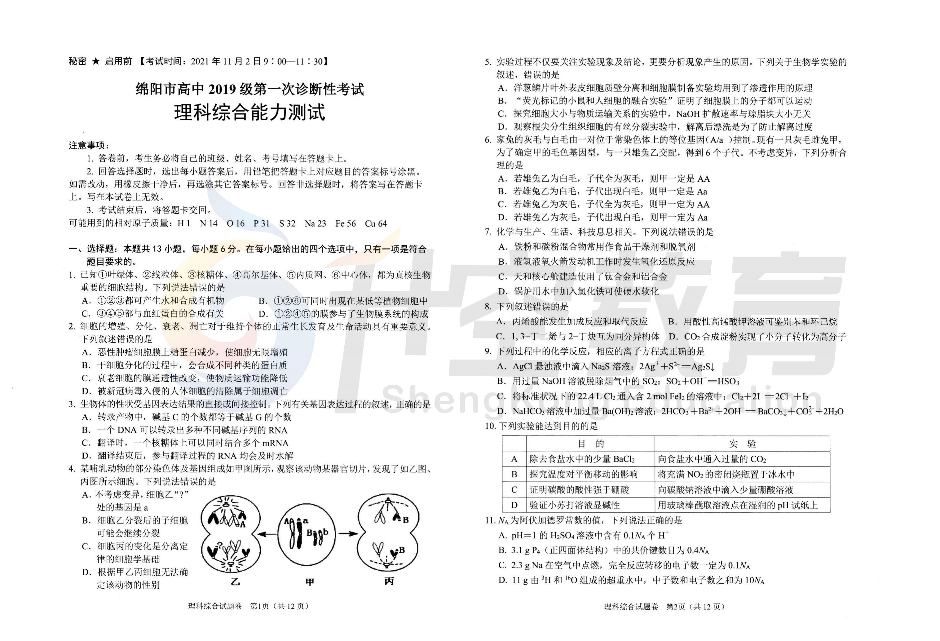 如今考试已结束,四川升学规划网老师第一时间将2022届绵阳一诊考试各科试题及答案上传至我站,以下是2022届绵阳一诊考试理综试题及答案试题及答案。