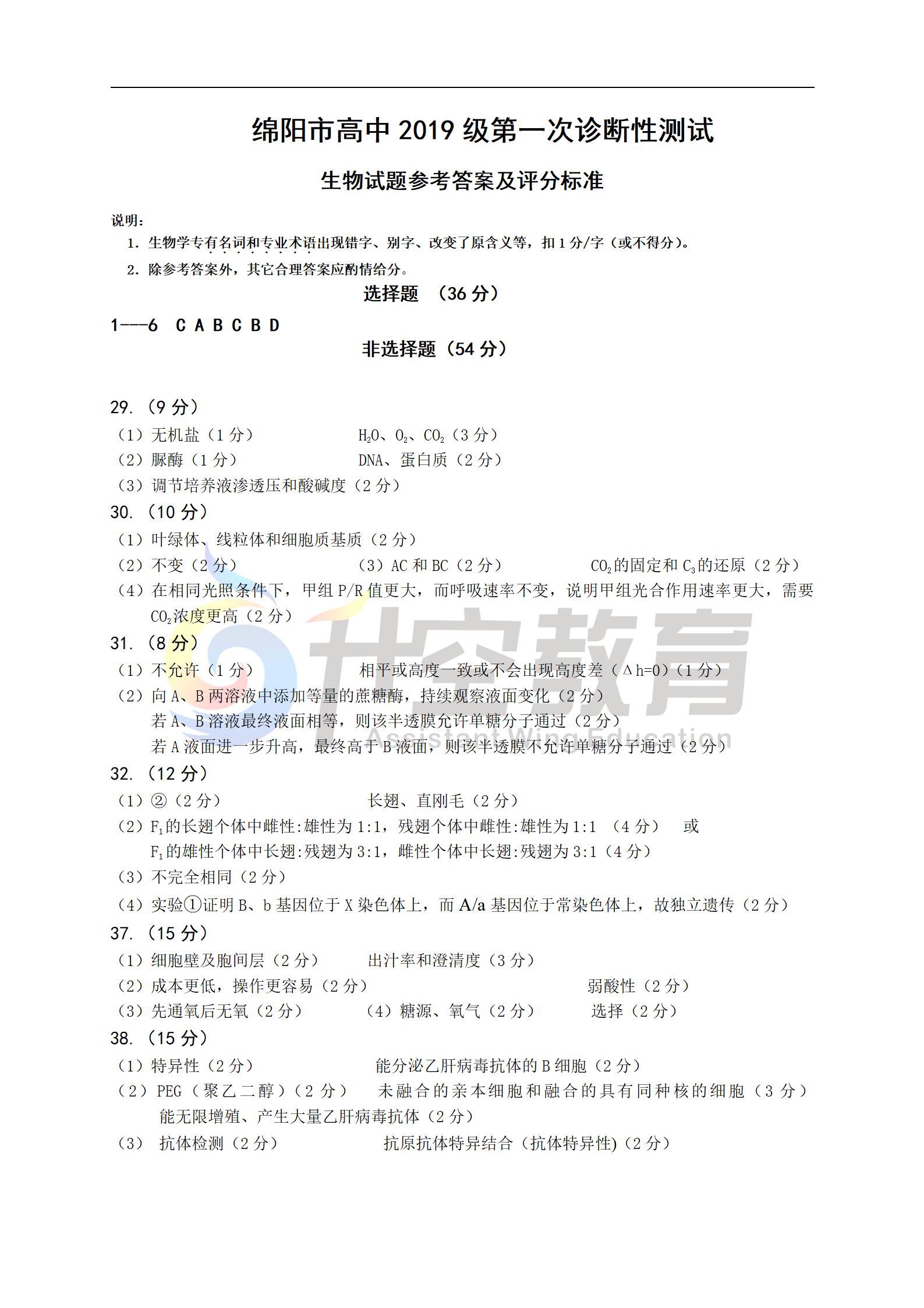 特别提醒:家长、同学可注册我站账号后联系线上老师获取2022届绵阳一诊理综无水印试题和答案!
