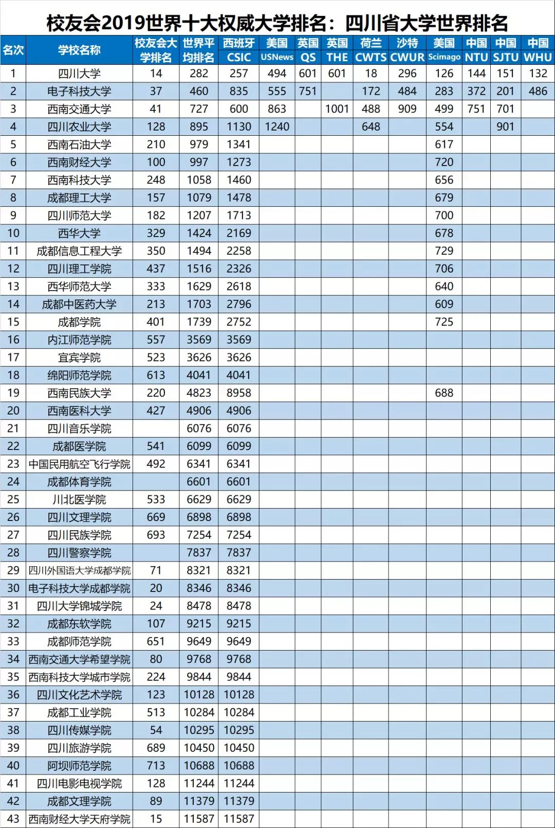 四川大学、电子科技大学、西南交通大学名列2019四川省大学排名前3强