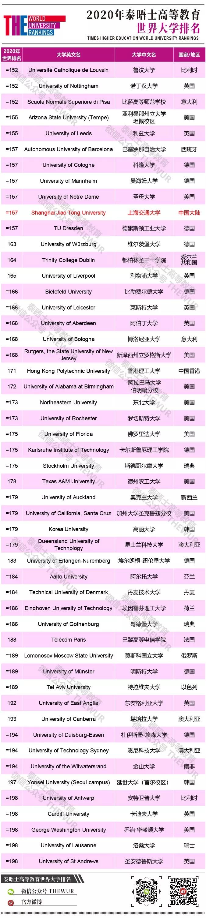 泰晤士高等教育(Times Higher Education) 于9月12日凌晨在与瑞士苏黎世联邦理工学院(ETH Zurich)联合举办的“世界学术峰会”上发布了2020年泰晤士高等教育世界大学排名。