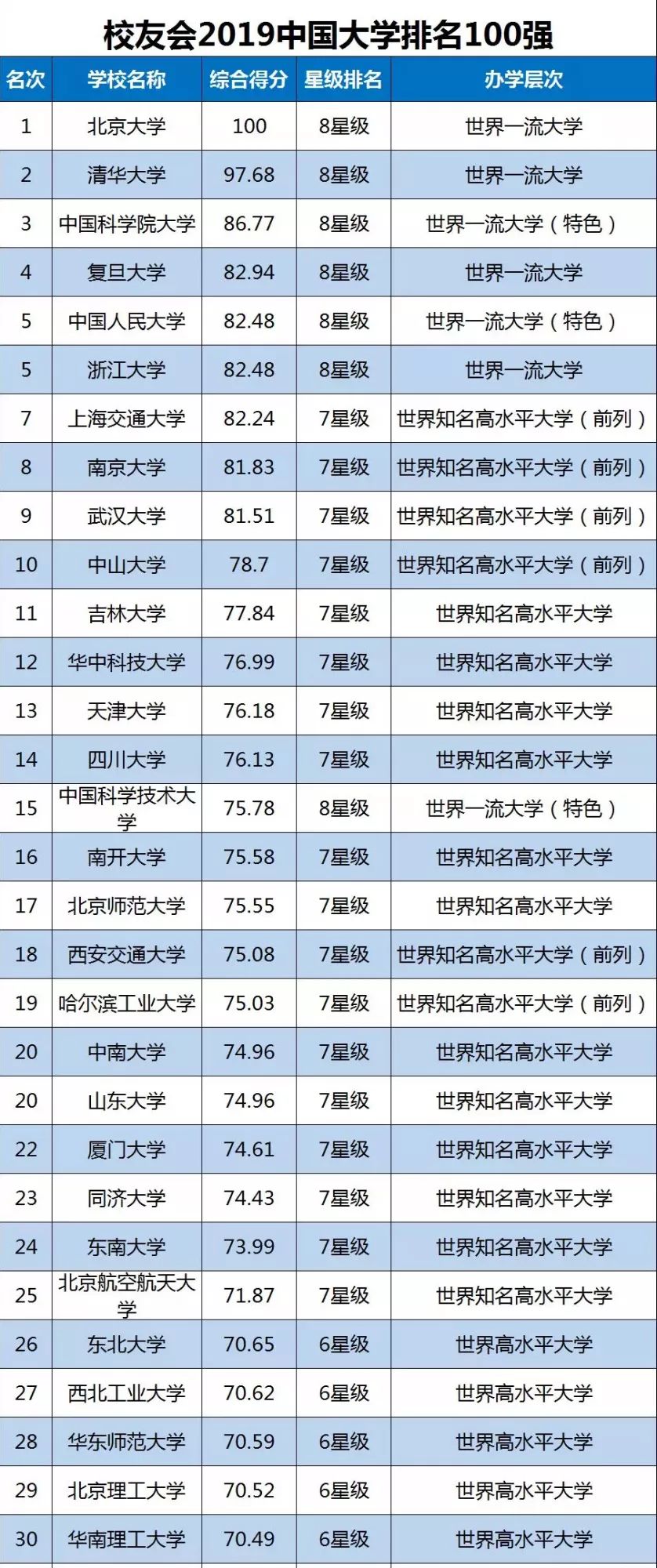 复旦大学的知名度不用多说了,此次排名得分82.94,而中国科学院大学得分86.77,属于碾压复旦大学,稳居第三名。以上就是2019中国大学排名100强,你认为这份排名怎么样呢?