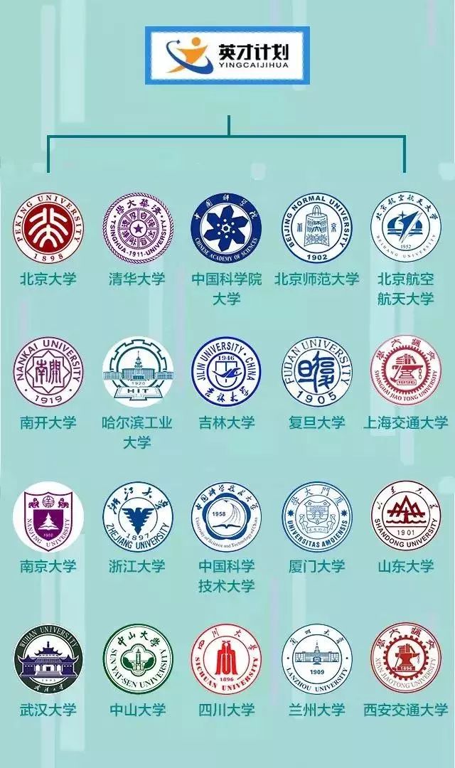 北京大学、清华大学、中国科学院大学、北京师范大学、北京航空航天大学、南开大学、哈尔滨工业大学、吉林大学、复旦大学、上海交通大学、南京大学、浙江大学、中国科学技术大学、厦门大学、山东大学、武汉大学、中山大学、四川大学、兰州大学、西安交通大学。