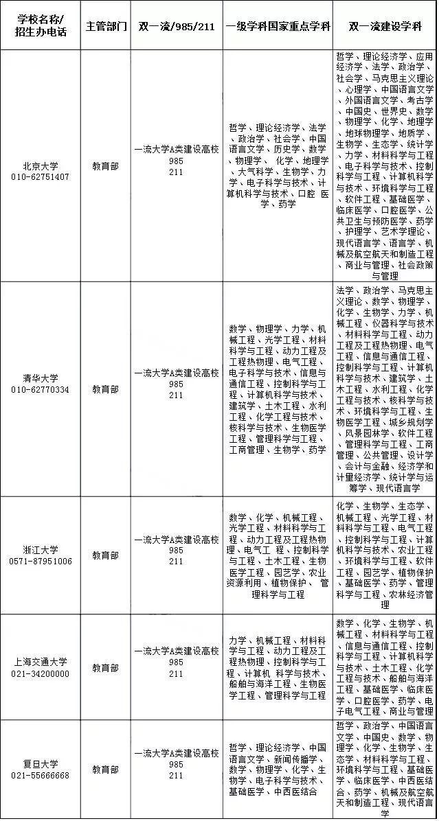 本次主要统计了“985”、“211”、“双一流”大学,以及部属高校的一级学科国家重点学科、双一流建设学科,供大家参考。