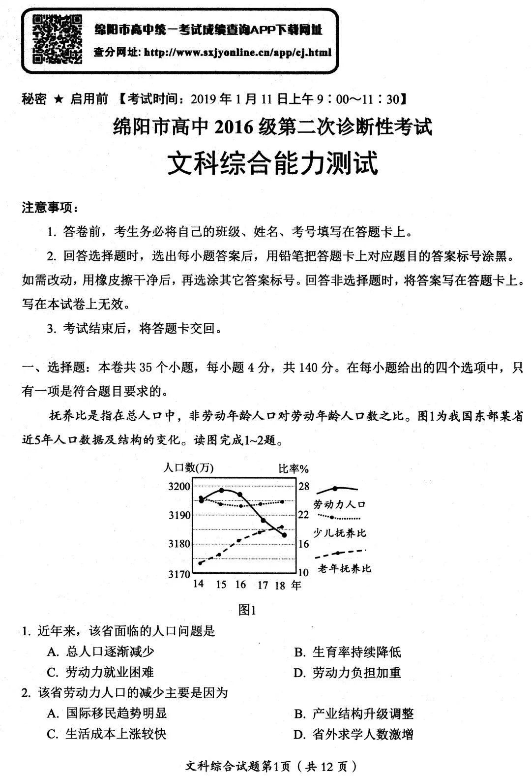 最新2020绵阳二诊文综答案政治历史地理试卷答案