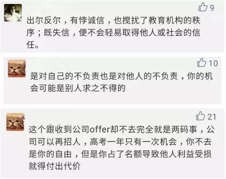 有网友觉得录取不报到的确是对自己和对他人一种不负责的表现: