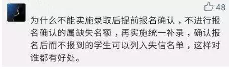 还有人觉得把不报到的学生加入失信名单还需要慎重,可以从招考流程上再想办法: