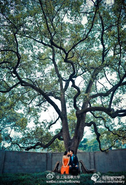 海大校友们将大榕树誉为学校的“爱情神树”,因其见证了不少情侣的等待、相约。民生路校区拆除后,这棵树仍保留在原处,在临港校区的校史馆内仿制了一棵,希望校友们能在此找回自己的青春记忆。