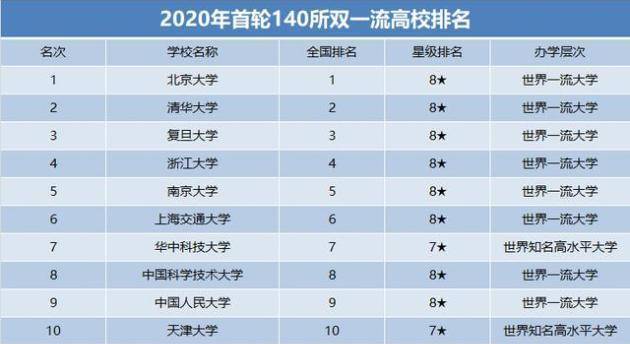 140所双一流大学最新排名,浙大第四,中科大仅第八,人大重返前十