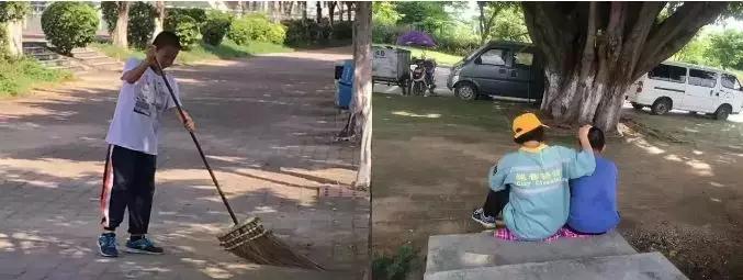 每个周末的清晨,这个小男孩都要帮做环卫工的母亲打扫街道。