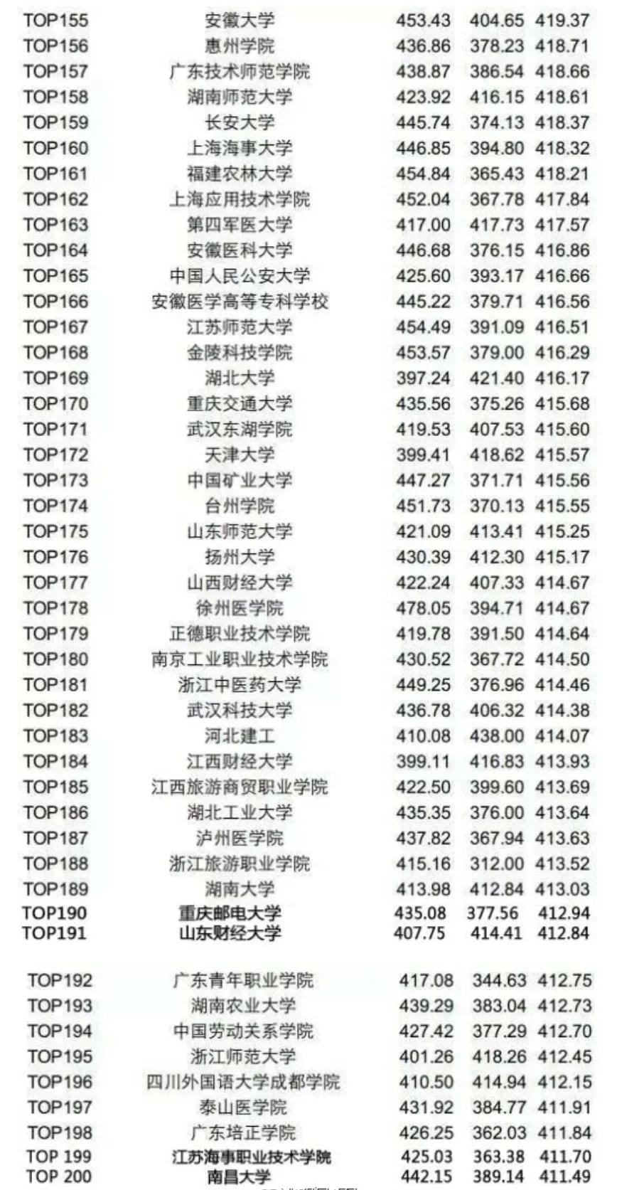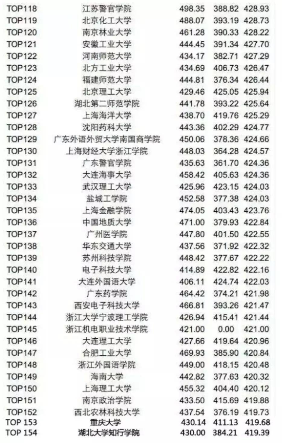还在等出分的小伙伴们也可以参考榜单里的学校四六级平均成绩,估算一下自己的分数