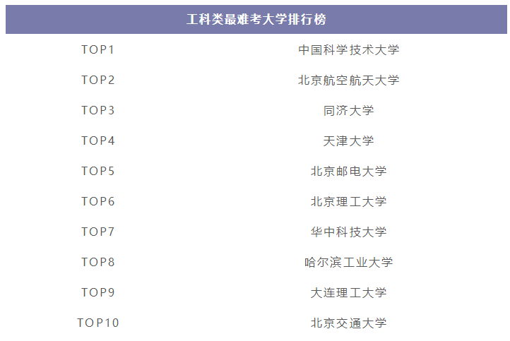 果然,无论对于文科生还是理科生来说,清华大学、北京大学和复旦大学当之无愧为最难考的前三名。