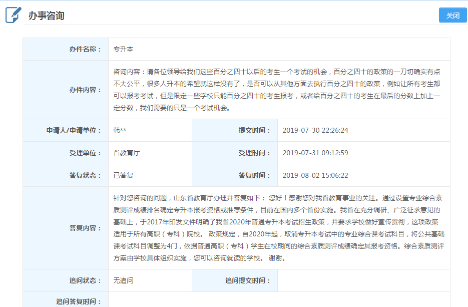 2019年,山东省抬高了应届生参加“专升本”考试的门槛:综合素质测评成绩不得低于同年级、同专业的前40%,引起一片哗然。