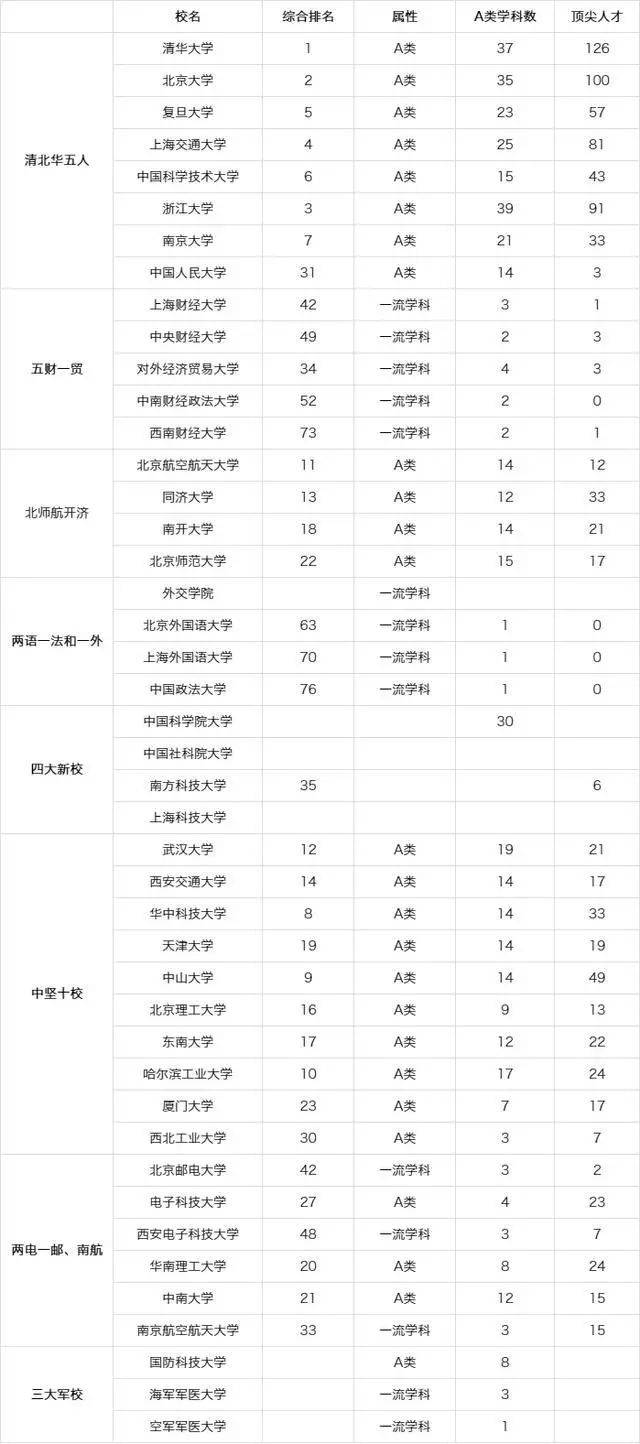 另外除了清北华五人了之外,中坚十校、四大新校以及三大军校也都是还不错的,实力非凡,不仅有着一流的建设,而且学术氛围好、平台高,未来发展潜力大。
