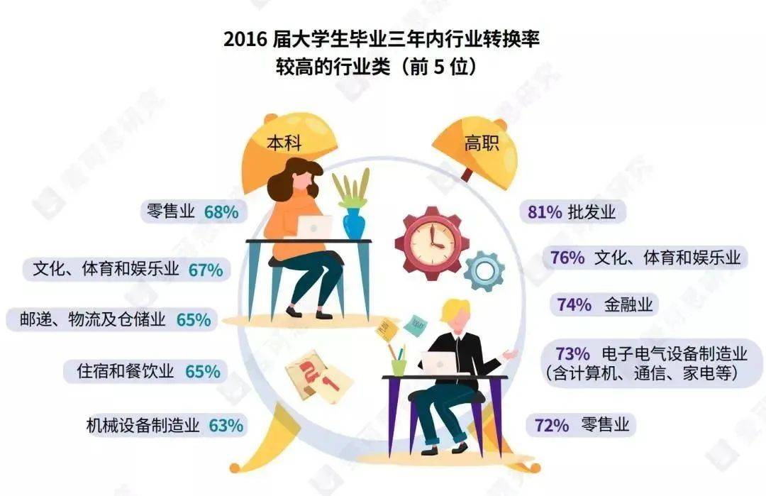 根据数据显示,三年内转换行业较高的行业类有以下这些: