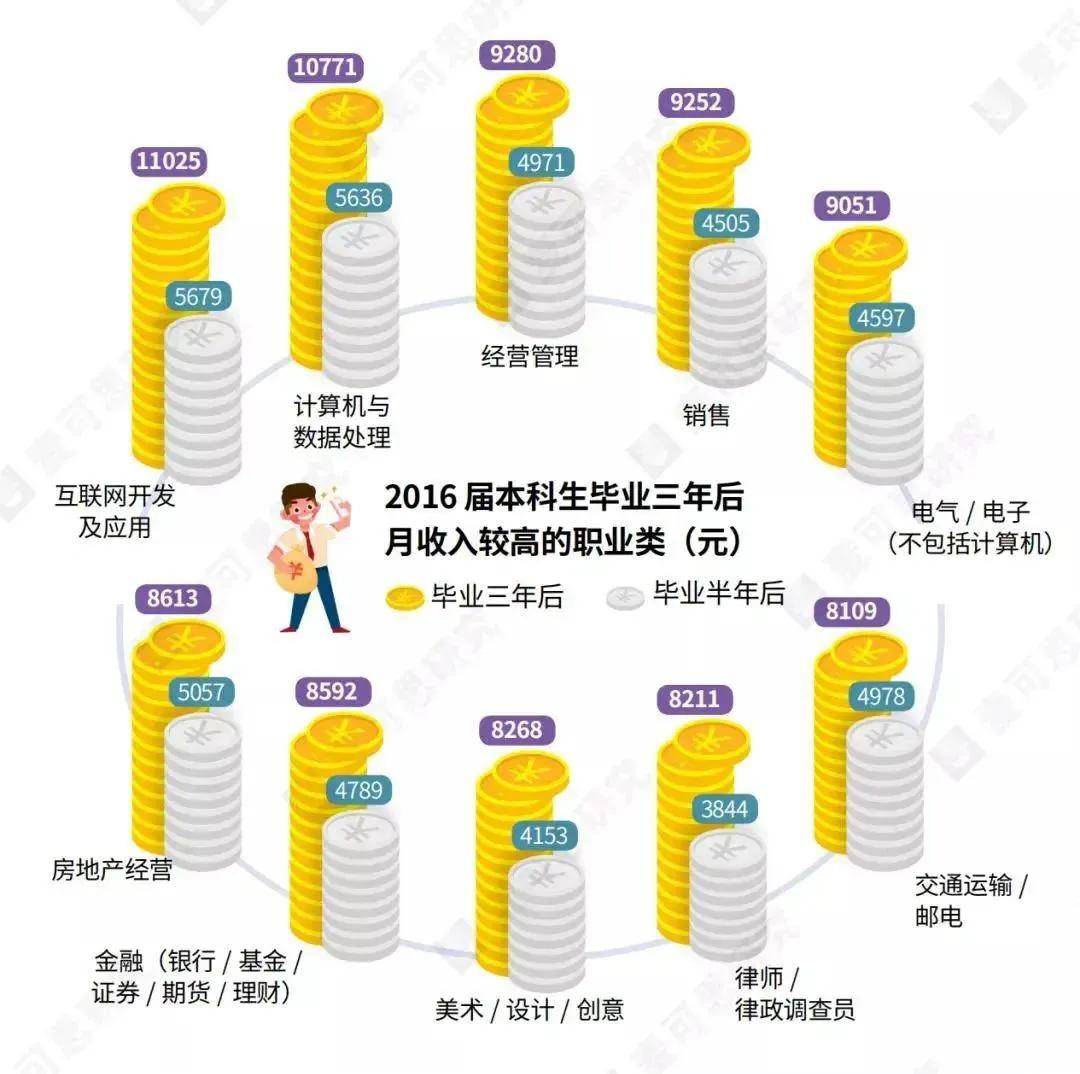 麦可思数据显示,大学生毕业三年后平均月收入增长将近八成。