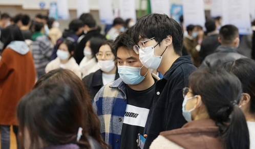2022年11月18日,江苏常州,为促进毕业生实现更加充分更高质量就业,江苏理工学院举办2022年秋季校园招聘双选会。视觉中国 图
