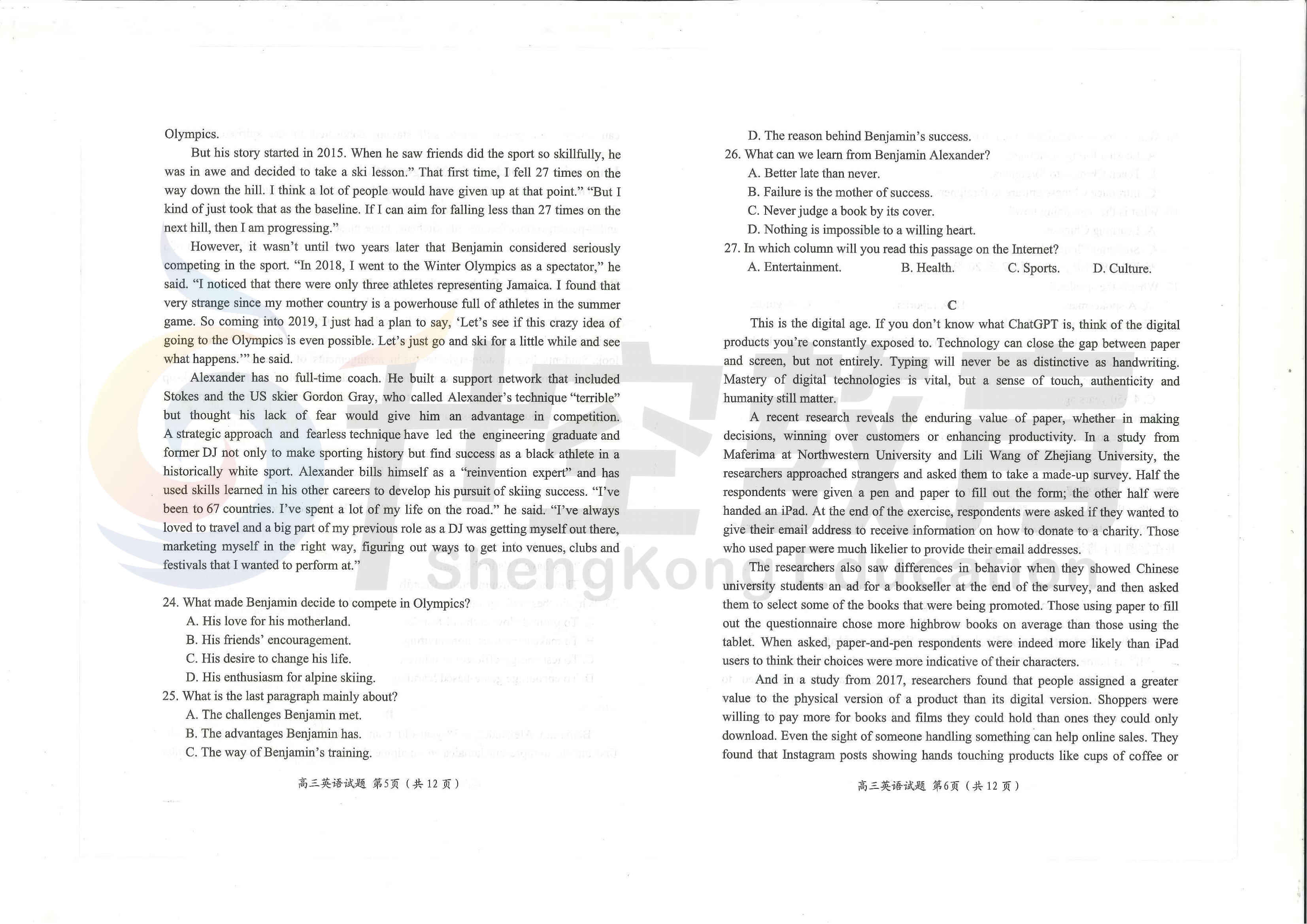 绵阳学生在今日(4月19日)迎来高三阶段最后一次模拟大考:绵阳三诊。今天四川升学规划网会给各位家长学生更新2023届绵阳三诊考试各科答案及试卷,含绵阳三诊语文、数学、英语、文综、理综等科目试题及参考答案,一起来看看绵阳三诊答案试卷吧!