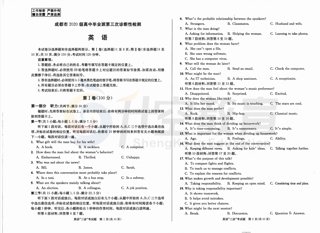 成都三诊已经5月8号、5月9日成功考完,你考得如何?不是成都的同学们,是否已经拿到了成都三诊各科试题了?还没有成都三诊试题的同学们不用到处去找试题,升空教育老师们给大家特别整理,将试题传至此处,大家保存图片即可!