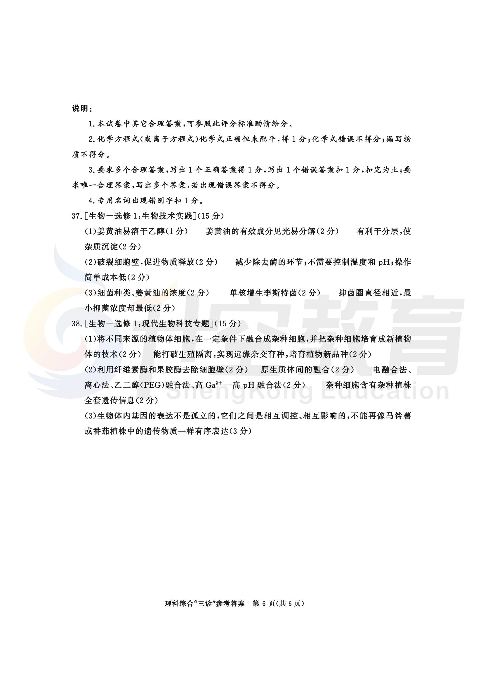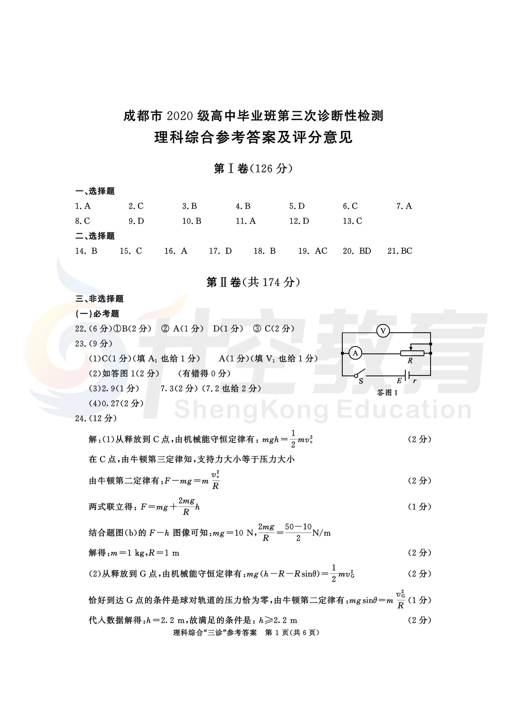 成都三诊理综答案: