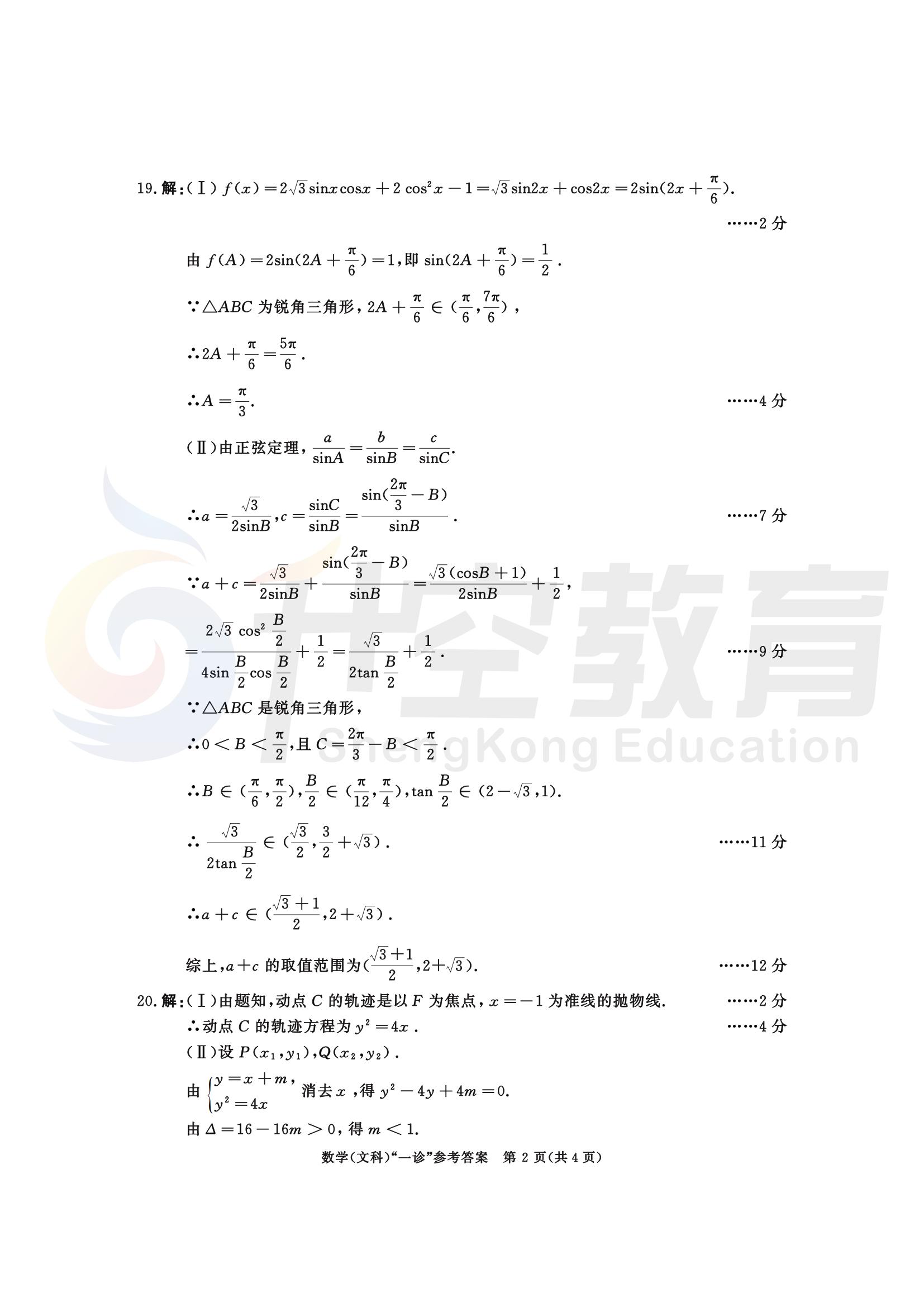2024届成都一诊文科数学答案:
