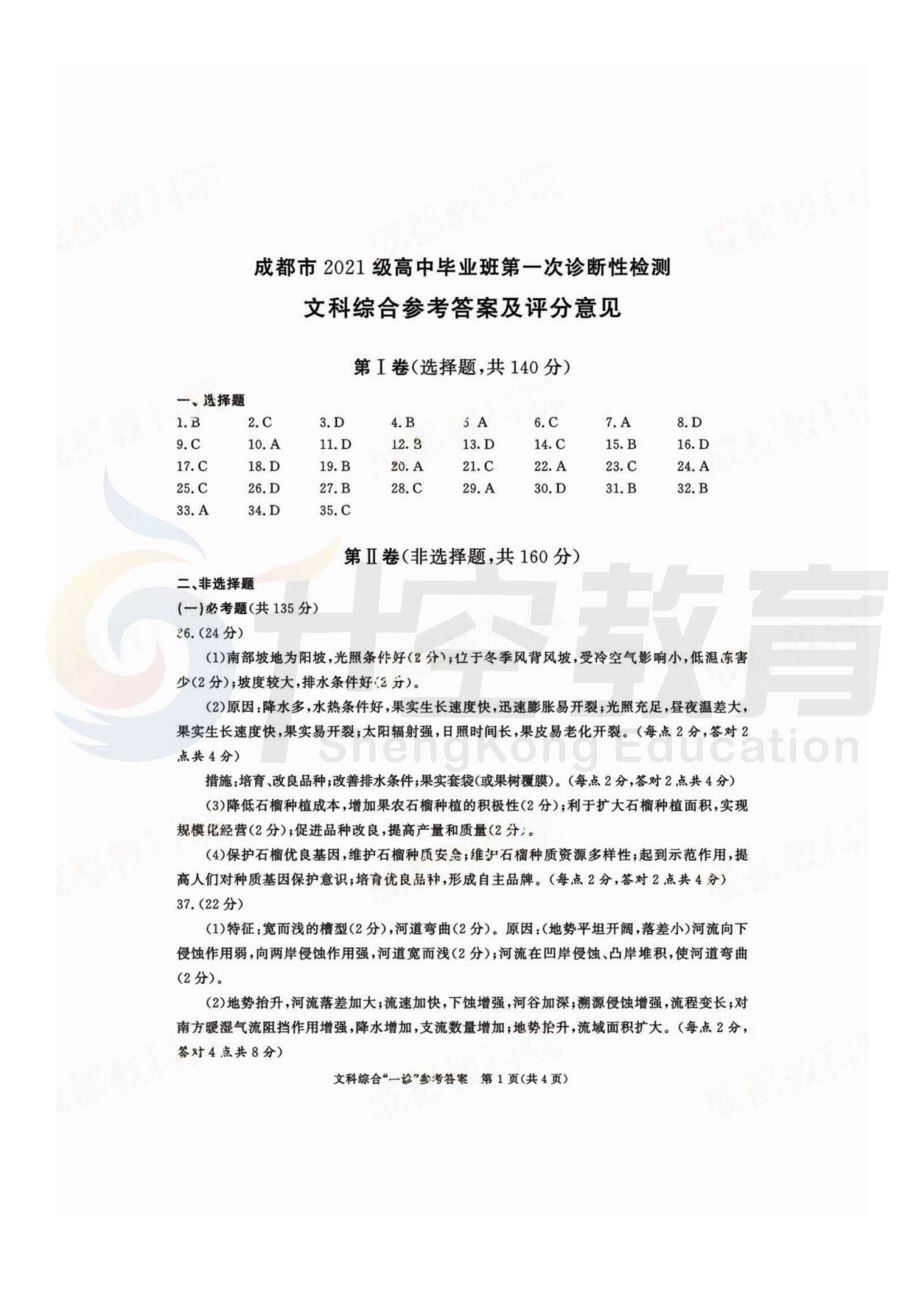 2024届成都一诊文综答案: