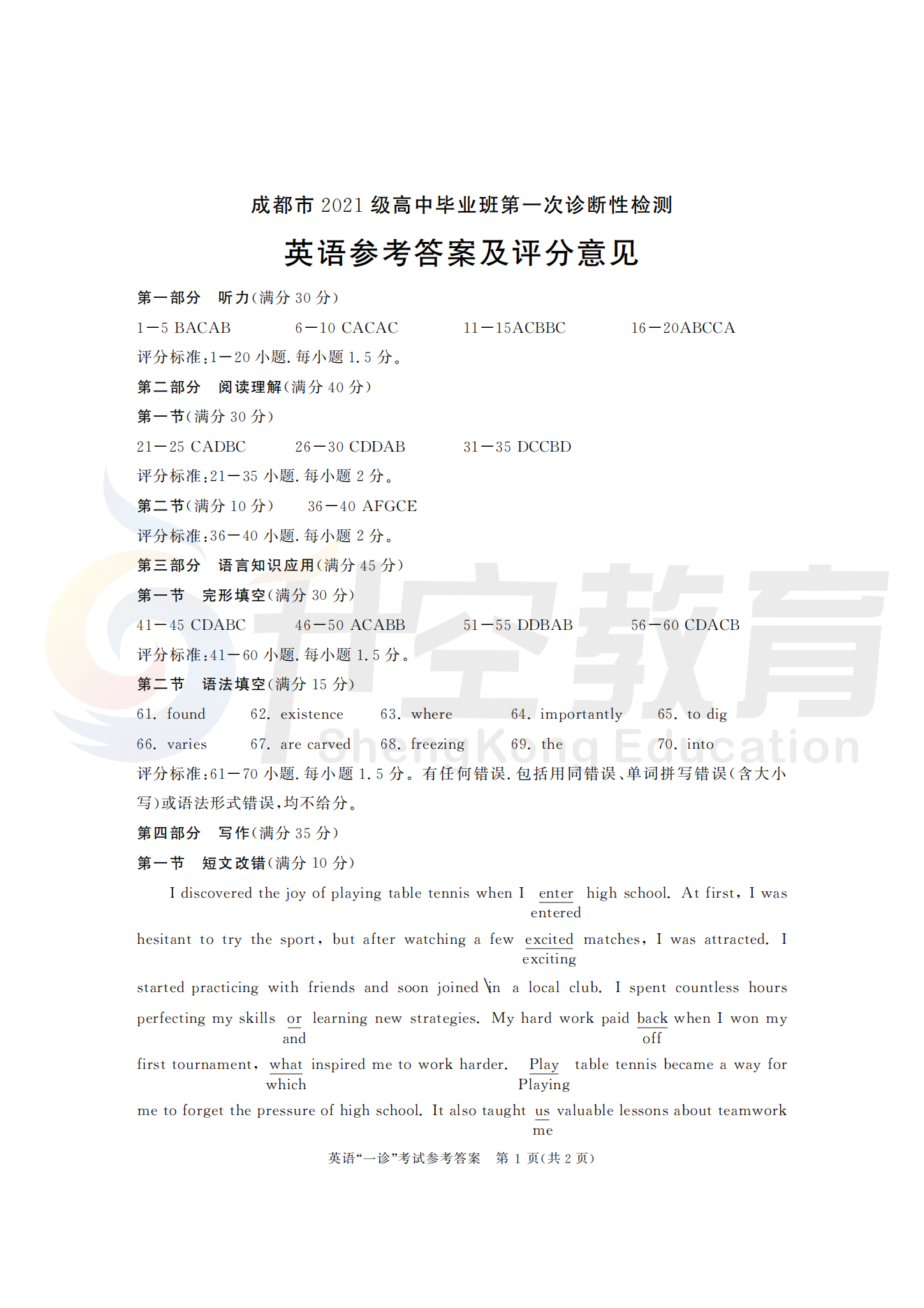 2024届成都一诊语文答案: